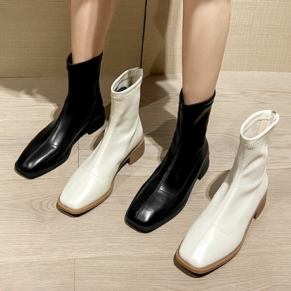 シューズ レディースブーツ 厚底ブーツ後ろファスナースクエアトゥ靴チャンキーヒール個性おしゃれヒール4cmブーツ大きいサイズ脚疲れない歩きやすい履きやすい滑り止めおしゃ