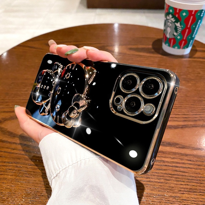 iPhone17/17Pro/17Pro Max用 ミラー&スタンド機能 2in1 ハローキティ 全周り衝撃保護 7色 16/15/14/13対応