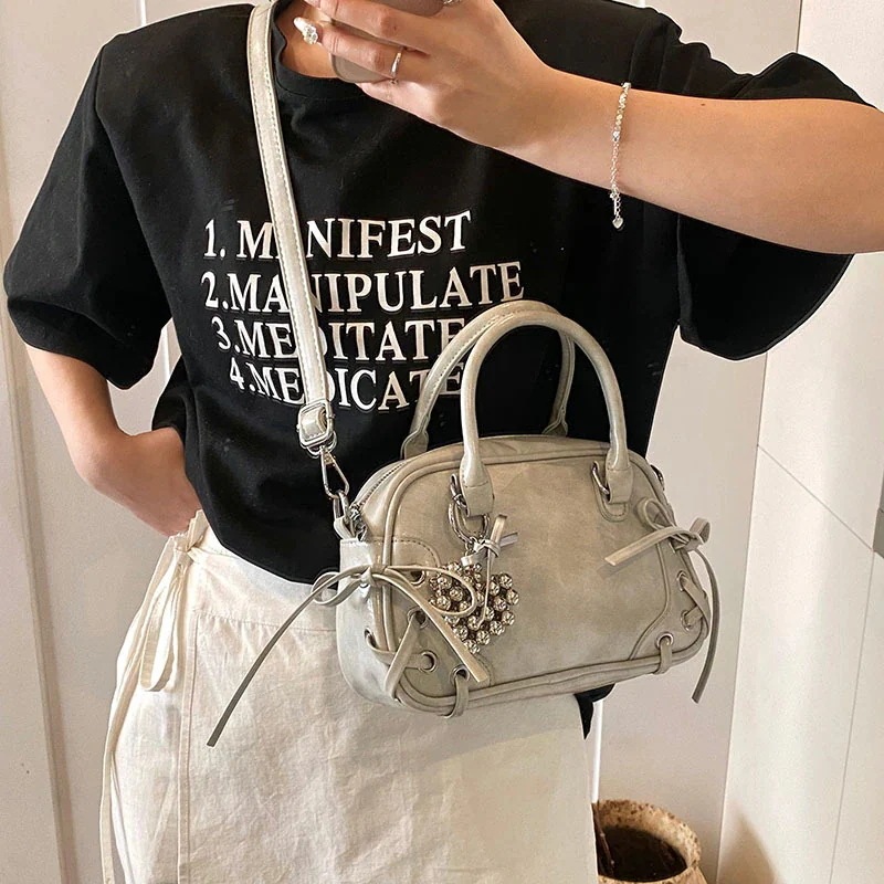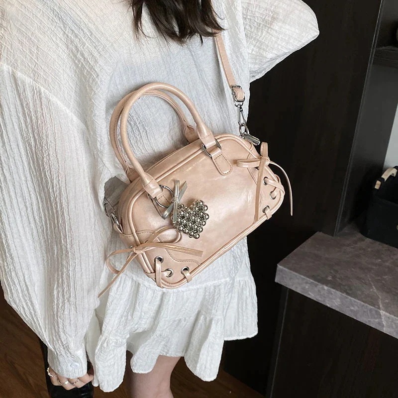 ショルダーバッグ 横長ボストンバッグ 通勤ワンショルダーアームピットバッグ2025新しいテクスチャーデザインスイートクールスタイルボウハンドボストンバッグ女性 韓国ファッション