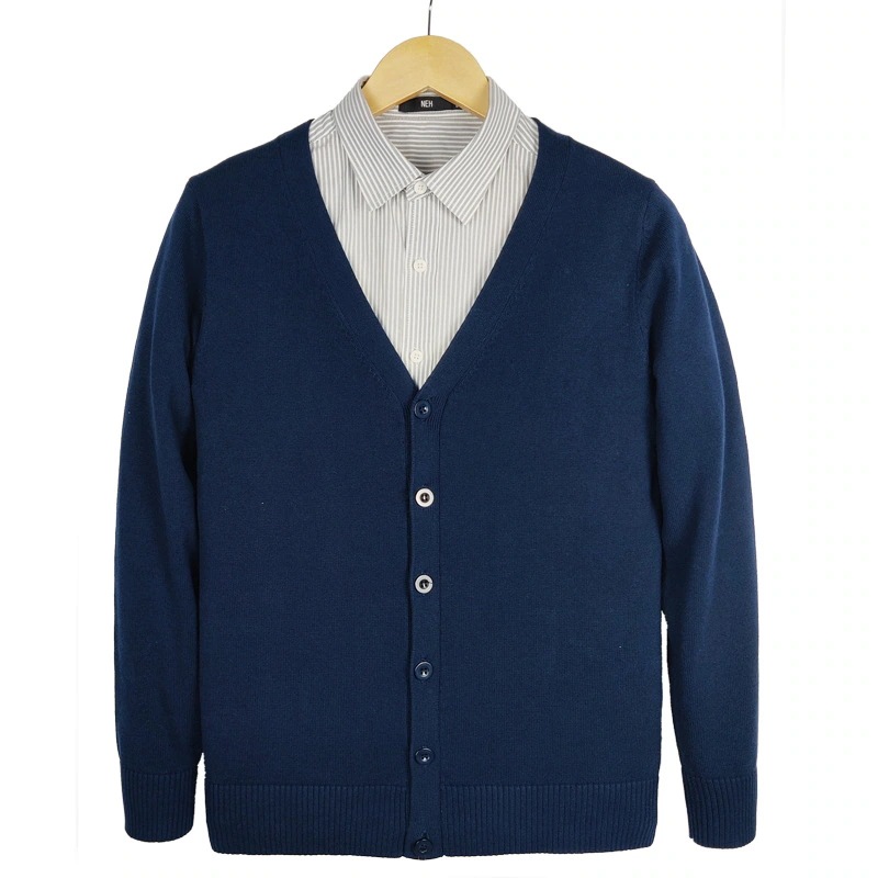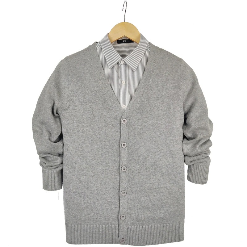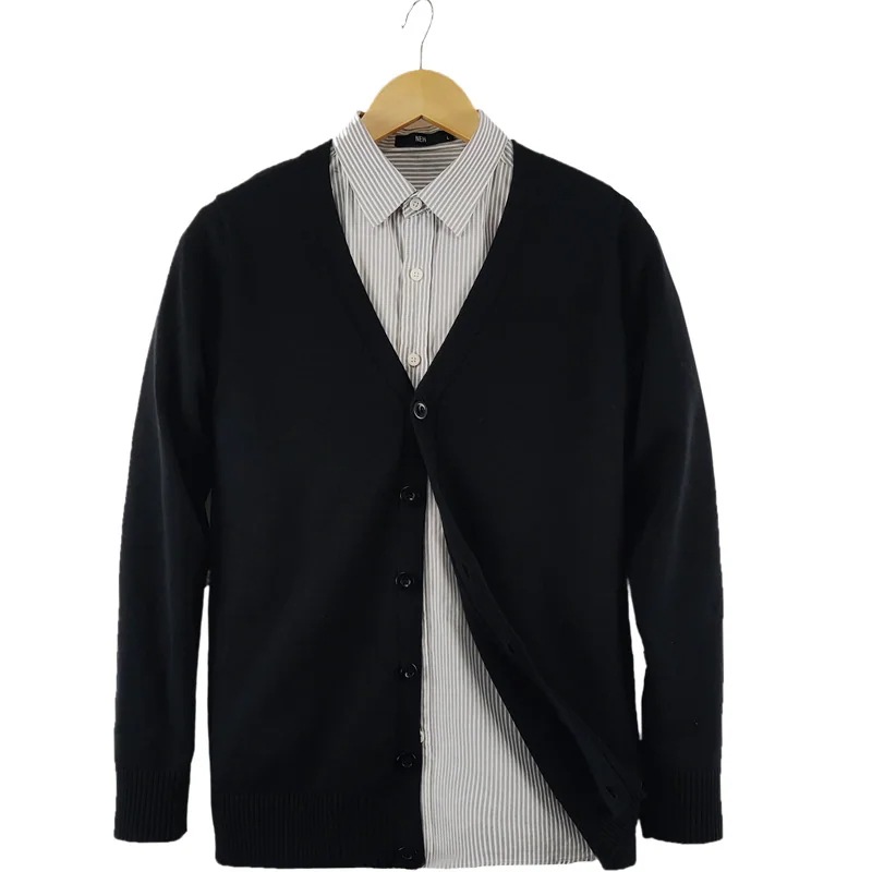 新作万能メンズニット シンプルカラー 綿100% ニットカーディガン Vネック 英国風 単色セーター アウター