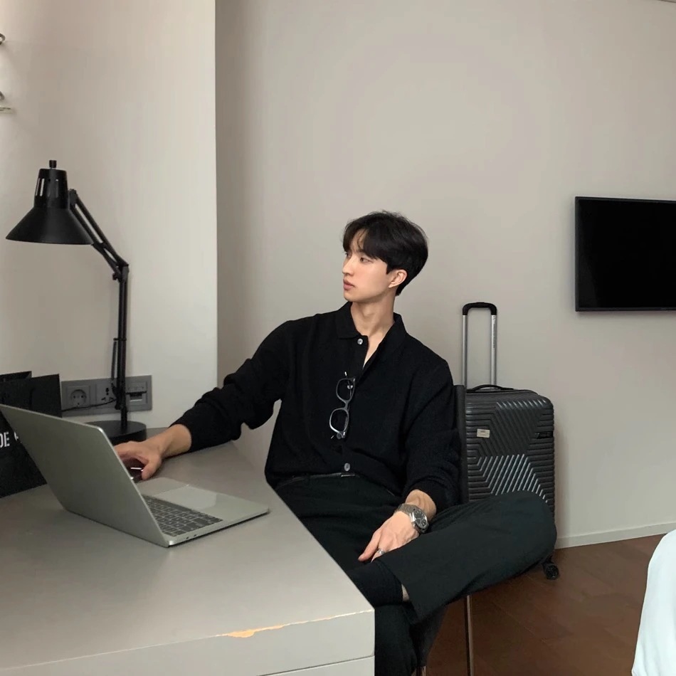 秋冬用ラペルニットカーディガンジャケット男性用セーター韓国風メンズファッションカジュアル韓国東大門トップス