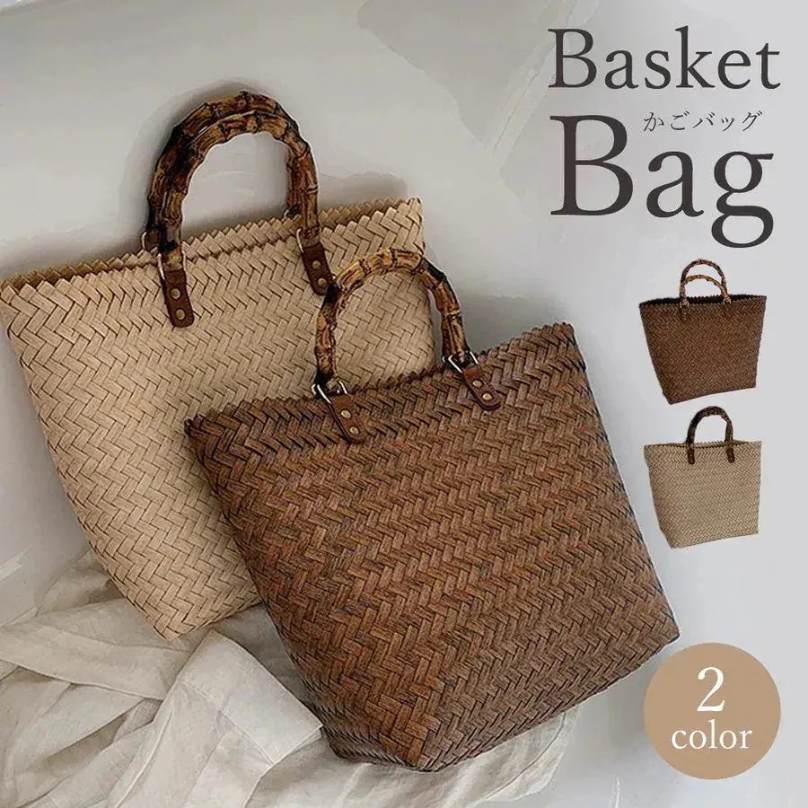 人气ショルダーバッグ 大容量トートバッグ らしいかごバッグ持ち手は使いやすいバンブーハンドル手提げ バッグ トートバッグ 軽量 軽い バスケット エスニック アジアン ナチュラル アジアン雑貨 2
