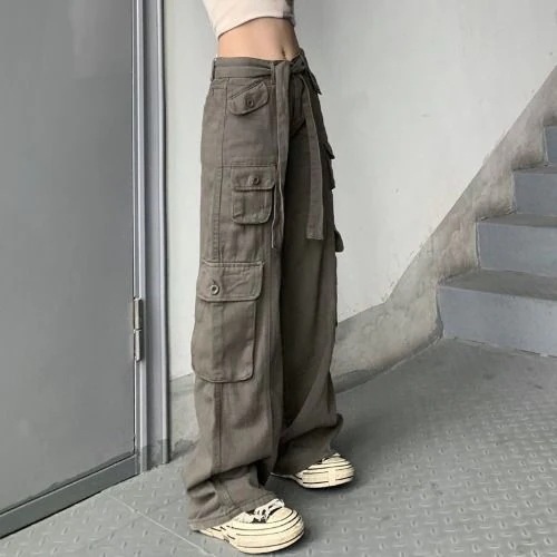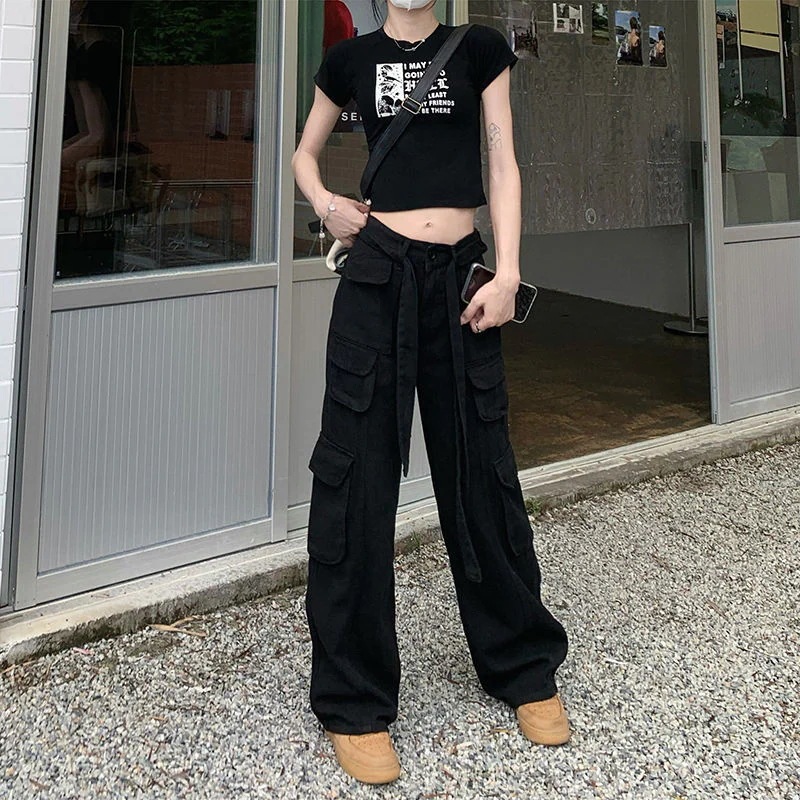 人气パンツ女子の新作ゆったりファッションレトロストリートパンツストレートパンツロング丈ハイウエストワイドパンツカジュアルパンツ