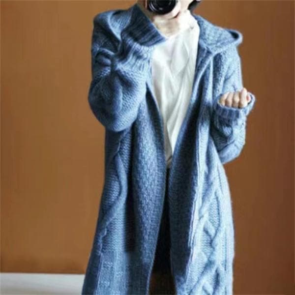 人气厚ニットカーディガンフード付きリブカーディガンニットレディース暖かい長袖セーター体型カバー服ロング羽織りアウター編み上げ