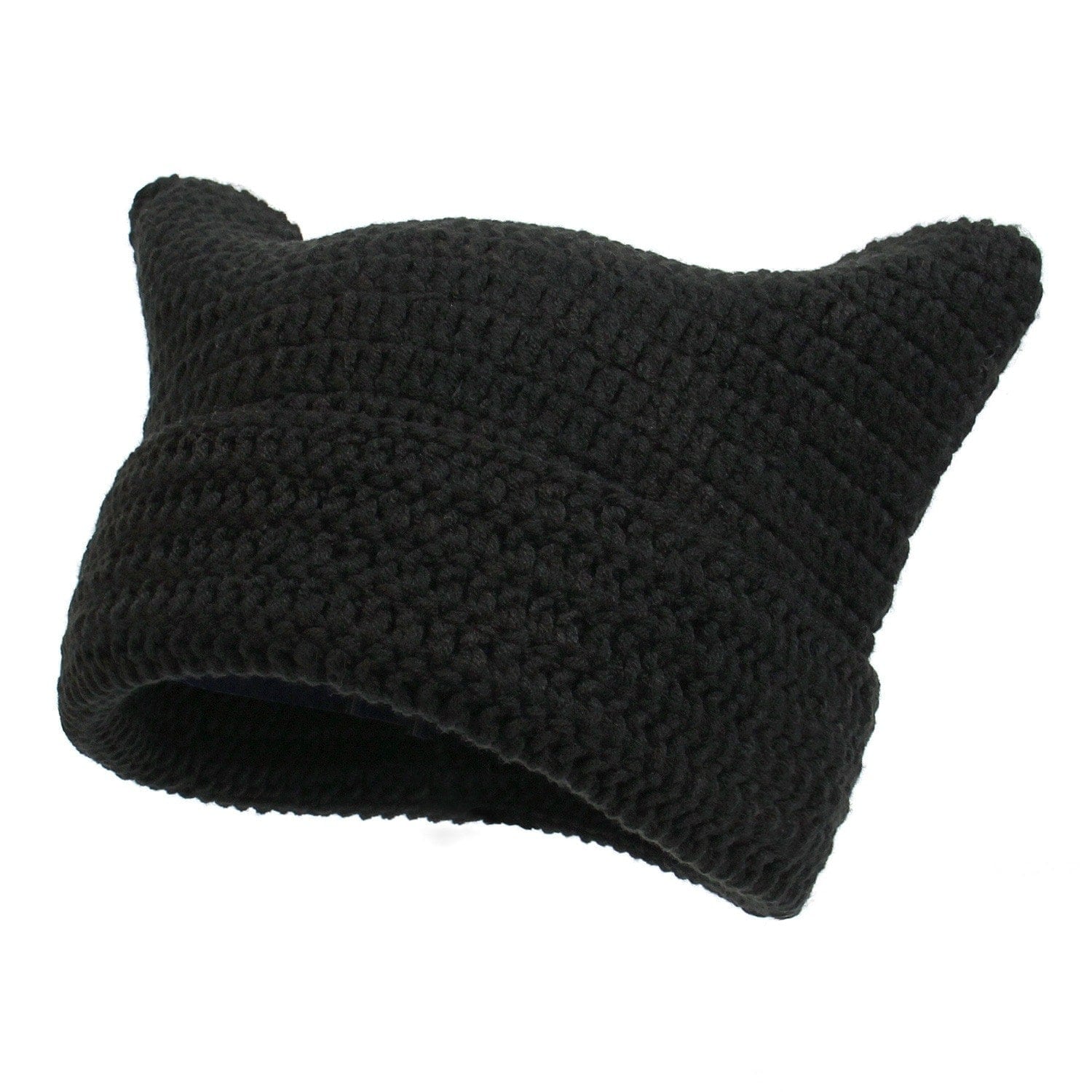 人气24 ニット帽 小悪魔りかぎ針編みウール帽子ストライプ帽子かわいい猫耳カジュアル暖かい帽子