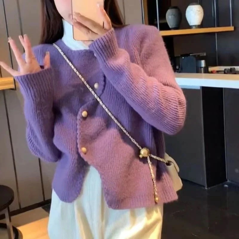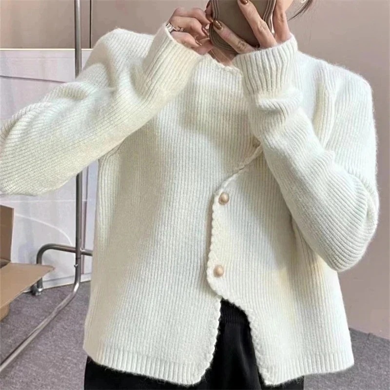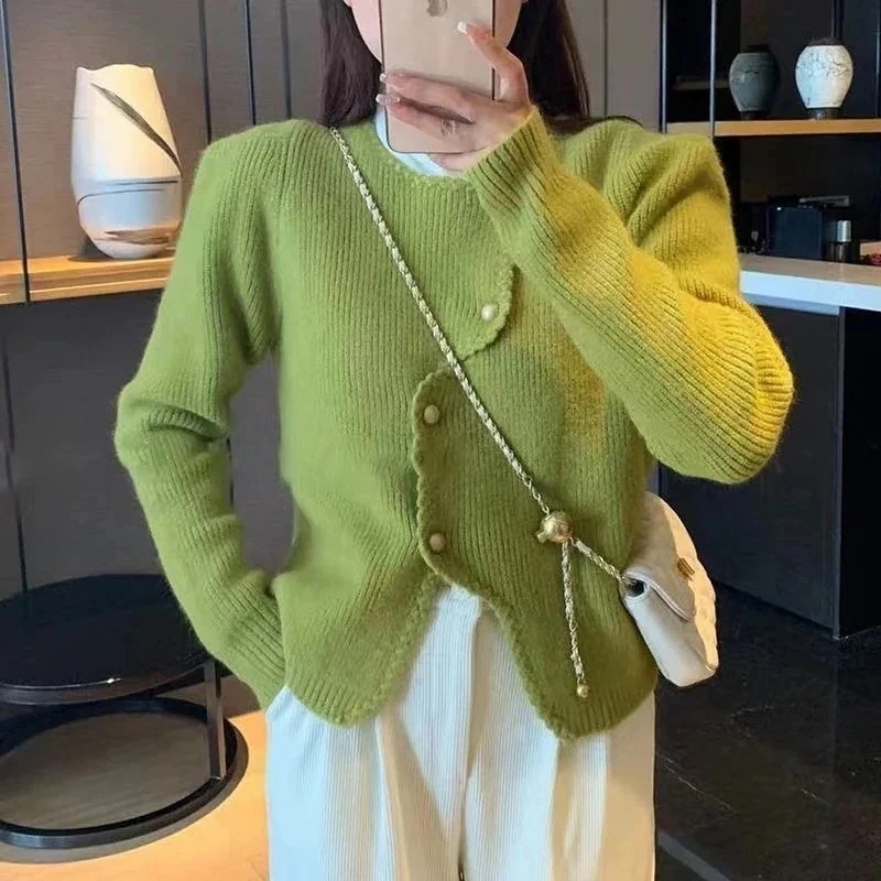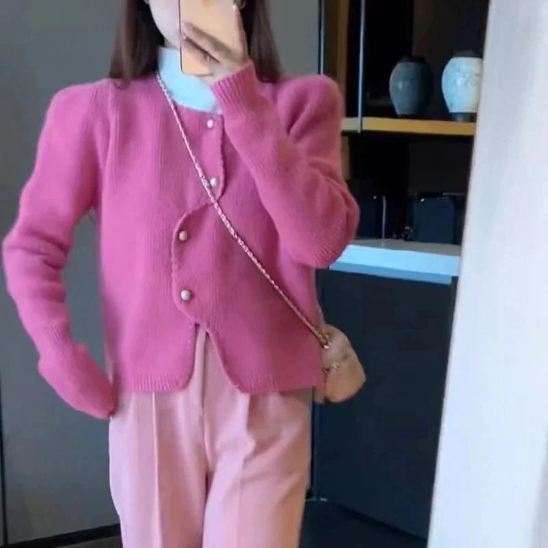 人气Xiaoxiangfeng カーディガン セーター レディース 24 新作韓国スタイル不規則なニッチパールボタンセーターセーター