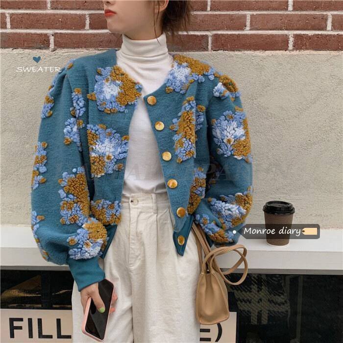 人气トップス レディース カーデガン 花柄 ボア おしゃれ 大人可愛い 長袖 個性的 レトロ ガーリー