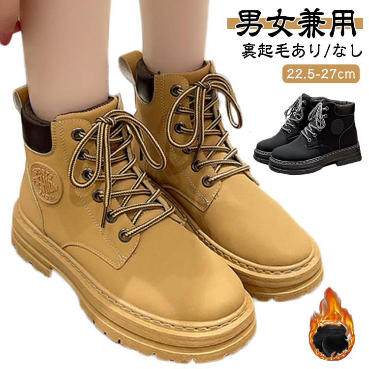 人气イエローブーツ おしゃれ ショートブーツ 編み上げブーツ ワークブーツ マウンテンブーツ アウトドア ブーツ レースアップ レディース ローヒール 男女兼用 ハイカット 厚底 裏起毛あり 靴 雪靴