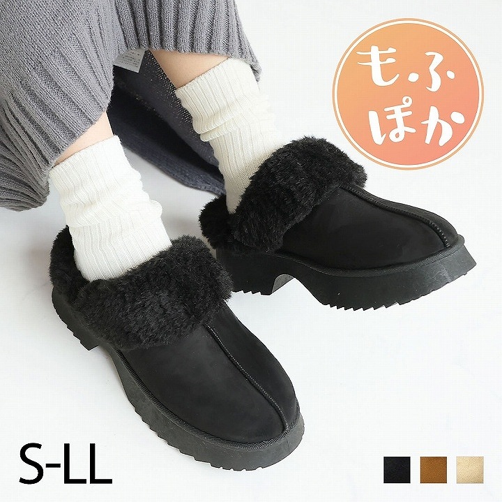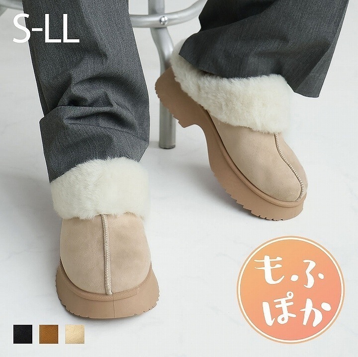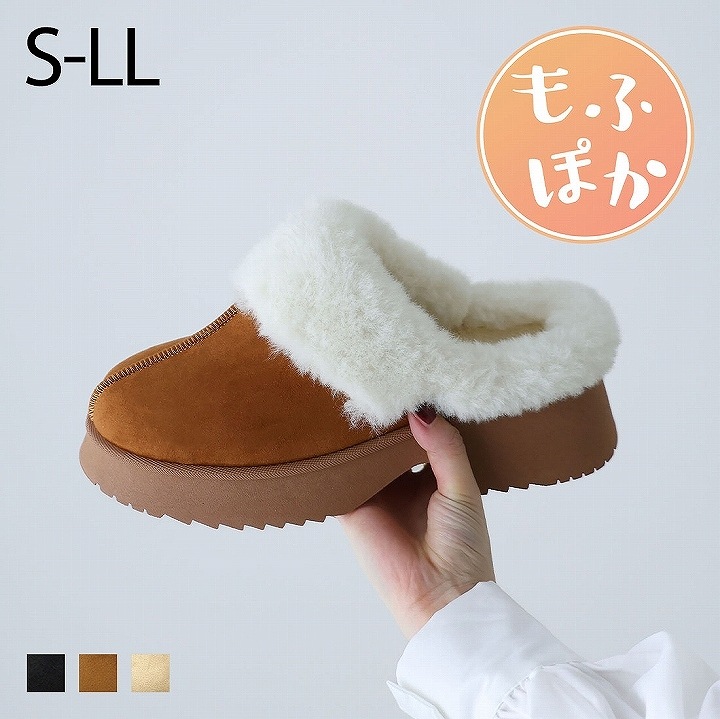 もふぽか VIVIAN ムートン サボ スリッパ ムートンブーツ 厚底 ブーツ レディース 5cm チャンキーヒール 撥水 防水 雪 雨 V6261AW