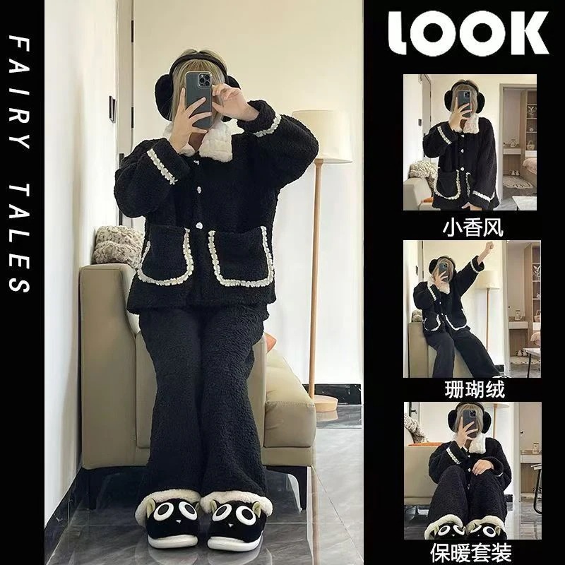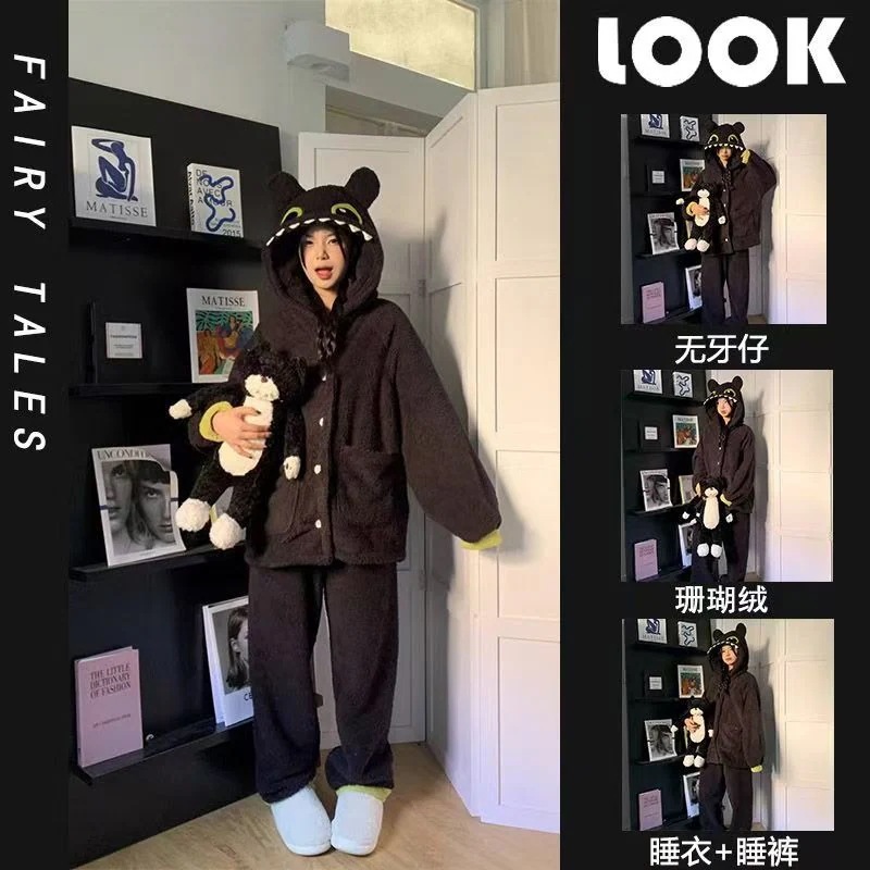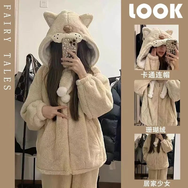 風がかわいいライオンサンゴの絨毯パジャマ女性秋冬加絨毯厚手保温住居用学生服