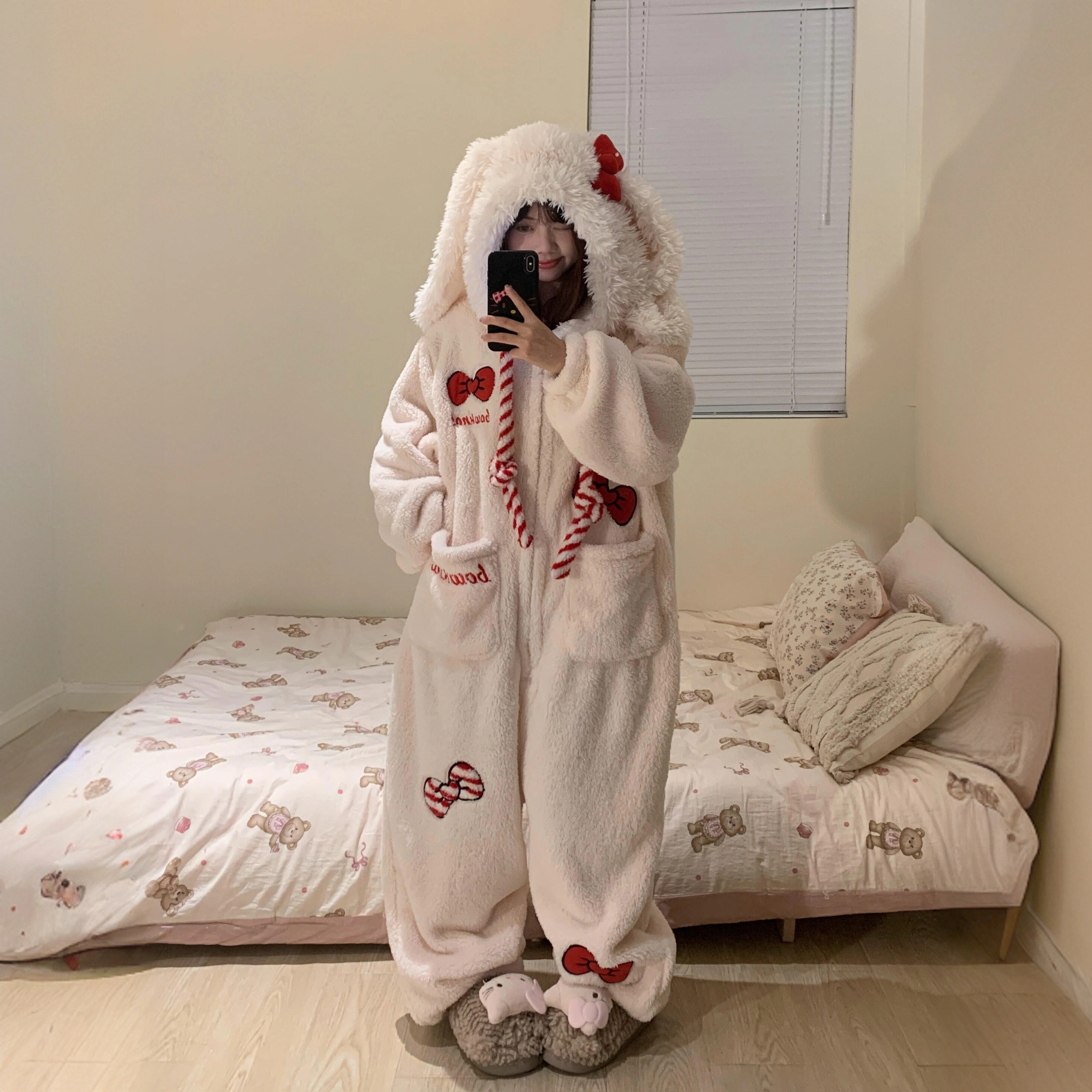 あったかルームウェア かわいいウサギサンゴのパジャマ女性秋冬加絨毯厚手保温フランネル部屋着セット外着可能
