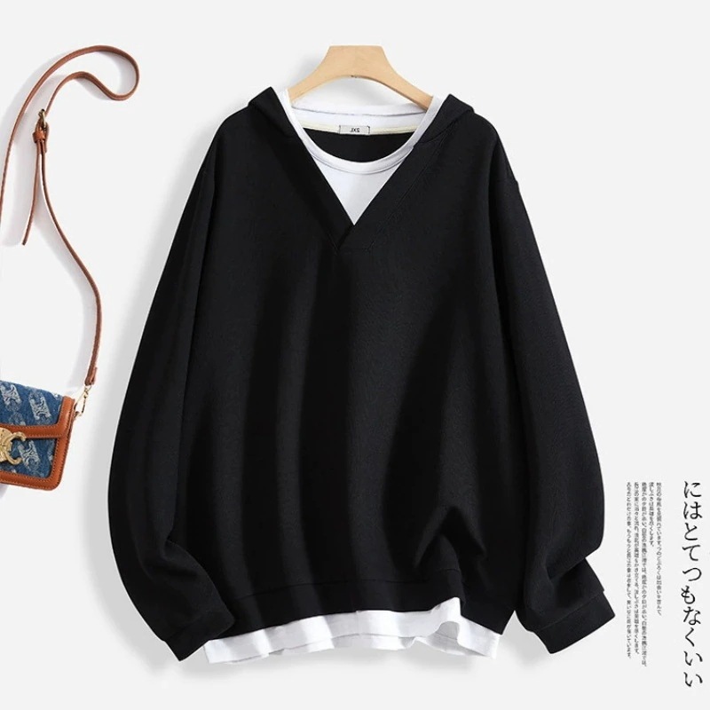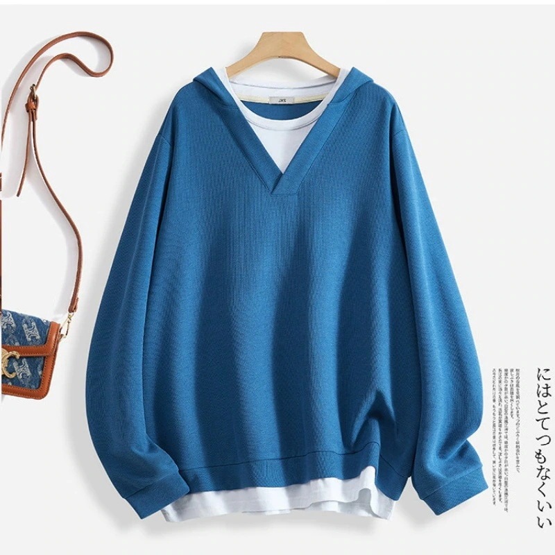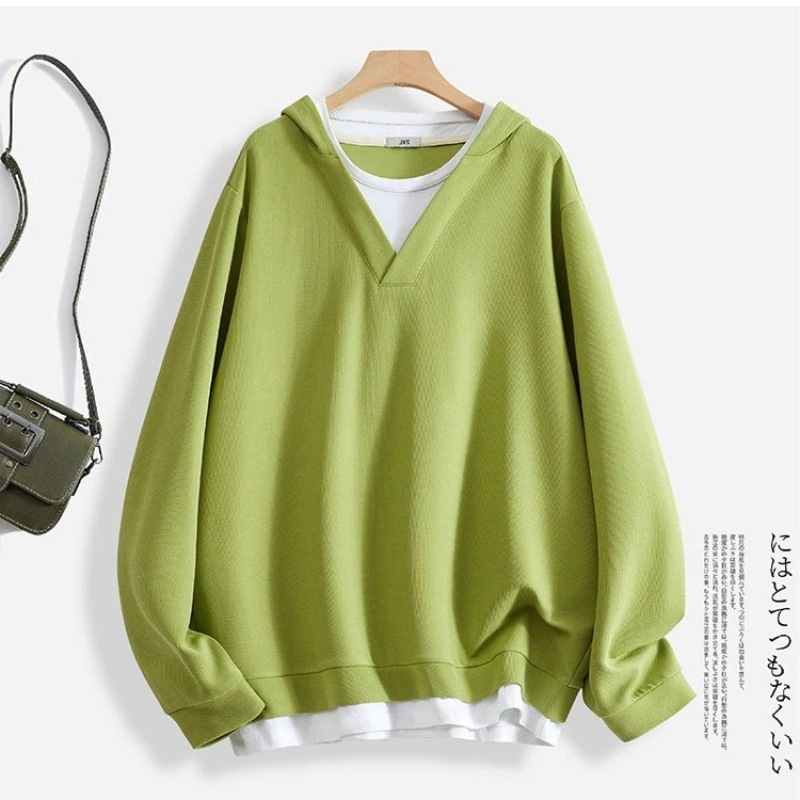 新入荷 快適 スウエット 長袖パーカー レディース 韓国ファッション フェイクツーピース 体型カバー 大きいサイズ長袖トップス 百掛け 着痩せ 大きいサイズ肉を隠す パーカー
