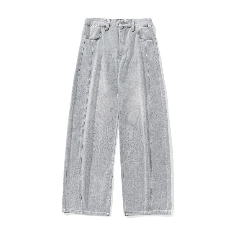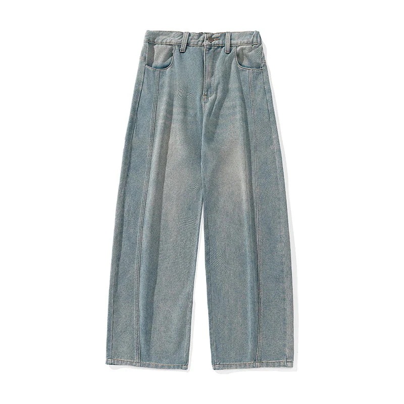シルエットゆったりウォッシュデニムパンツ(男性用) 春夏新作サイドパネルデザインラッパパンツ アメリカンレトロロングパンツ