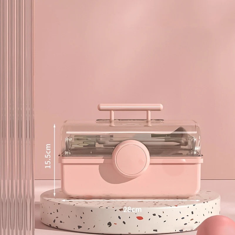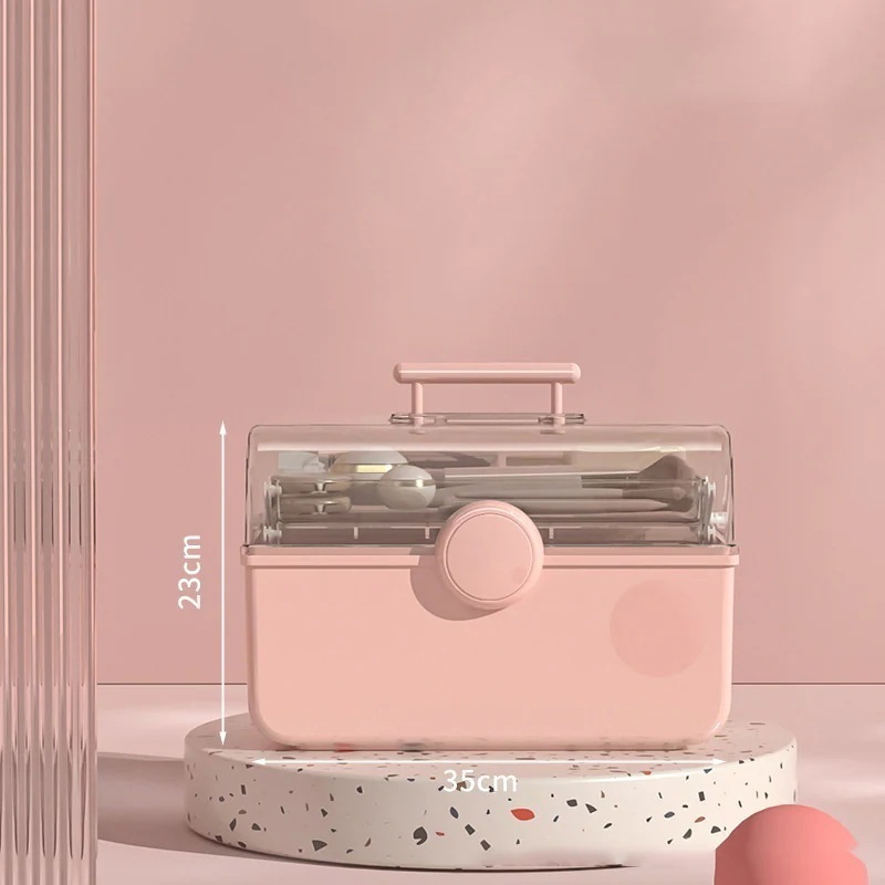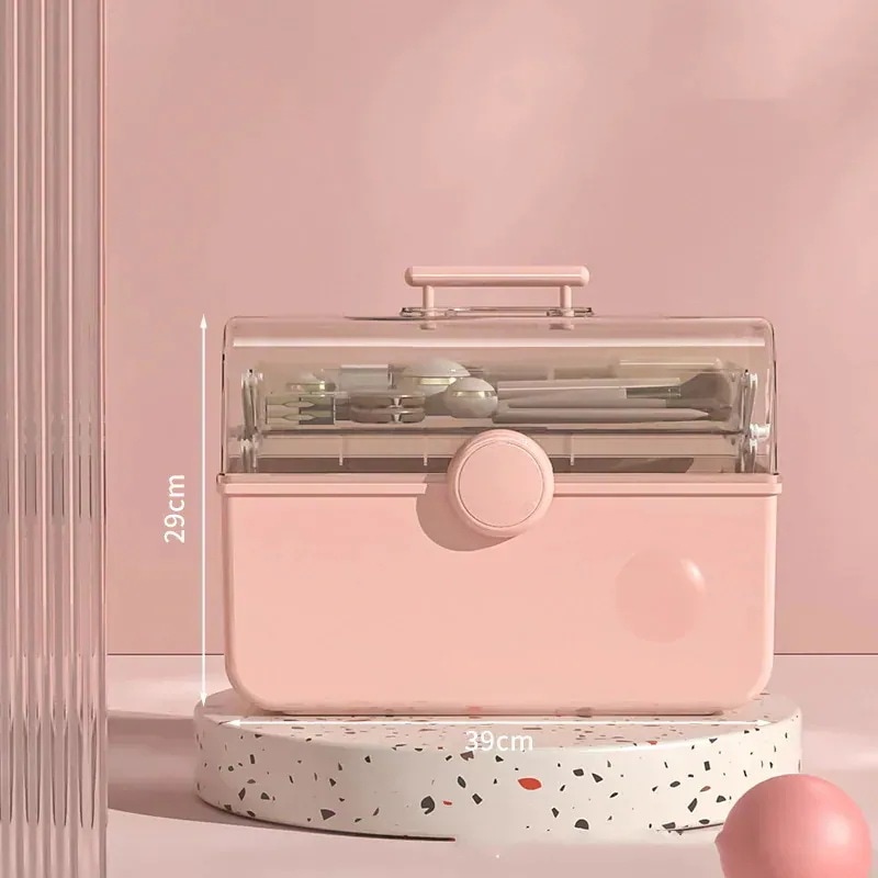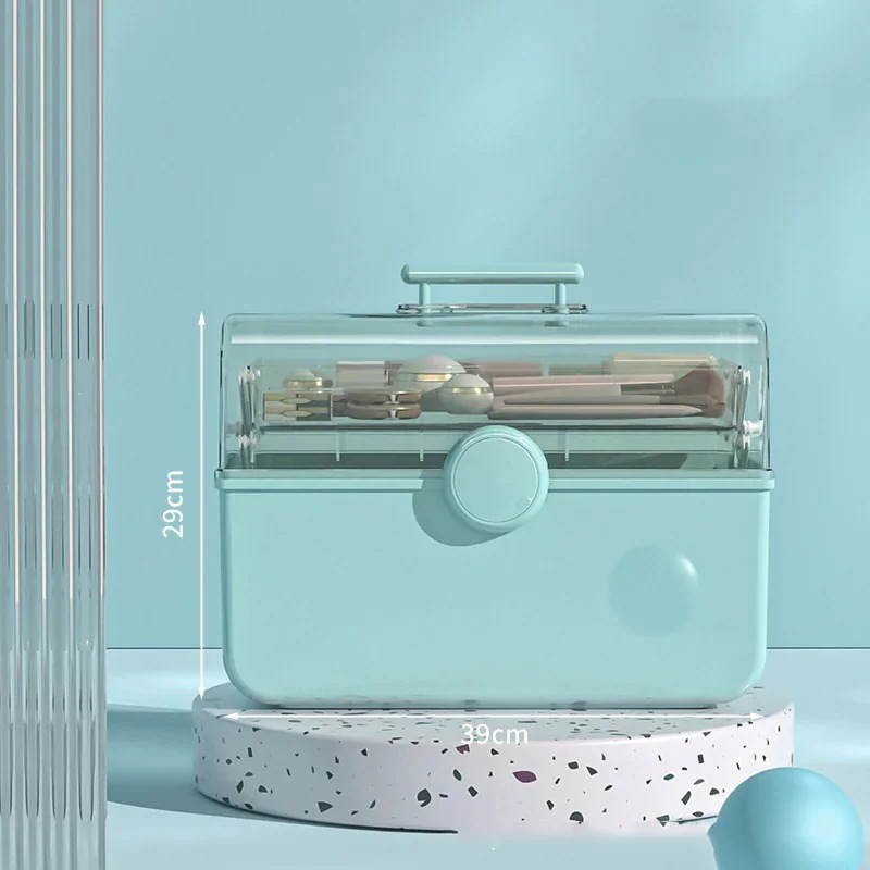 多層 メイクボックス 化粧品収納ボックス 救急箱 薬箱 収納箱 ネイル 小物 整理 折り畳み式 携帯大容量 蓋付き 防塵 持ち運び