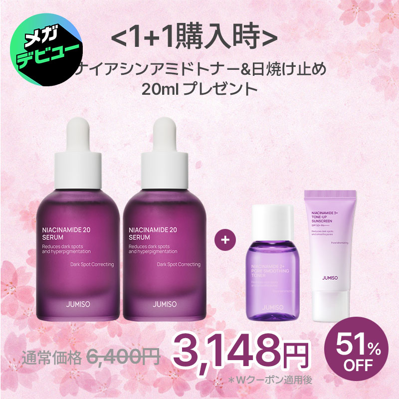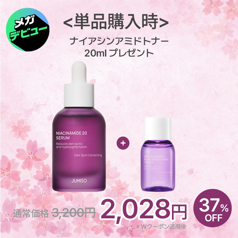 サンプルマーケットで無償で商品をいただきました。明るく透明感がある肌になりたいので、ナイアシンアミドが配合されているセラムが気になってました!このセラムにはトーンアップをサポートしてくれるナイアシンアミド、メラニン生成を抑えるグルタチオン、シミとくすみケアのトラネキサム酸がJUMISO独自の配合でブレンドされていてすごく豪華です👑それになんとTECAとヒアルロン酸も入ってる😍肌に優しく敏感肌の方にも使えるセラムです!なのでナイアシンアミドが20%も配合されているのに肌への刺激が少なく、赤みが出ることはありませんでした◎ヒリヒリすることもありませんでしたが、かなりの敏感肌さんで不安な方は同じ商品で10%があるのでそちらから始めることをお勧めします😁テクスチャーはサラっとするほうで少しとろみがあり、肌なじみがよく吸収される感じで特にベタつきません!塗ったあとは肌がふっくらするイメージです😊まだ使い始めたばかりですが、肌のキメが整ってきたように感じで感動しました🥹🩷翌朝クッションファンデのノリが良く、友達にもいつもよりファンデのノリがいいと言われました😆一本使い終わったあとにどれだけ肌が明るくなっているか楽しみだし、効果を期待できる商品だと思いました🥰あとは個人的に見た目がかわいいと思いました💜綺麗な紫のガラス素材で丸みがある形がかわいいです🦄