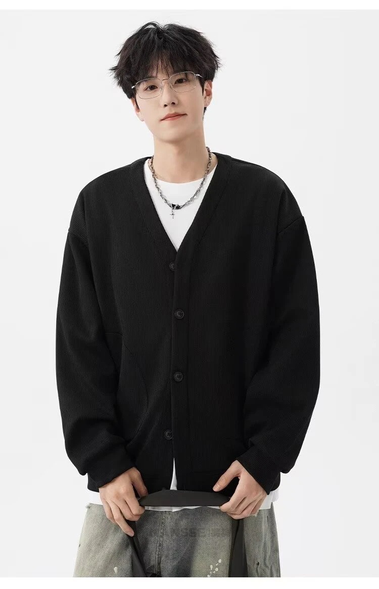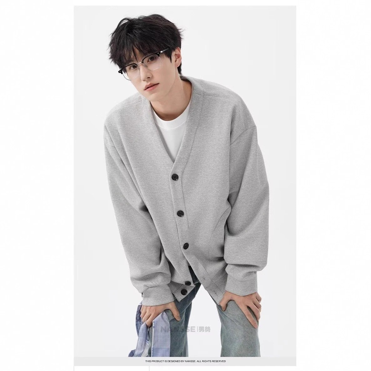 【厳選メンズ秋冬アウター】メンズ服 春秋 カップルコーデ アウター メンズ ストリートブランド Vネック ワッフル編み ニットカーディガン風 秋冬 ジャケット