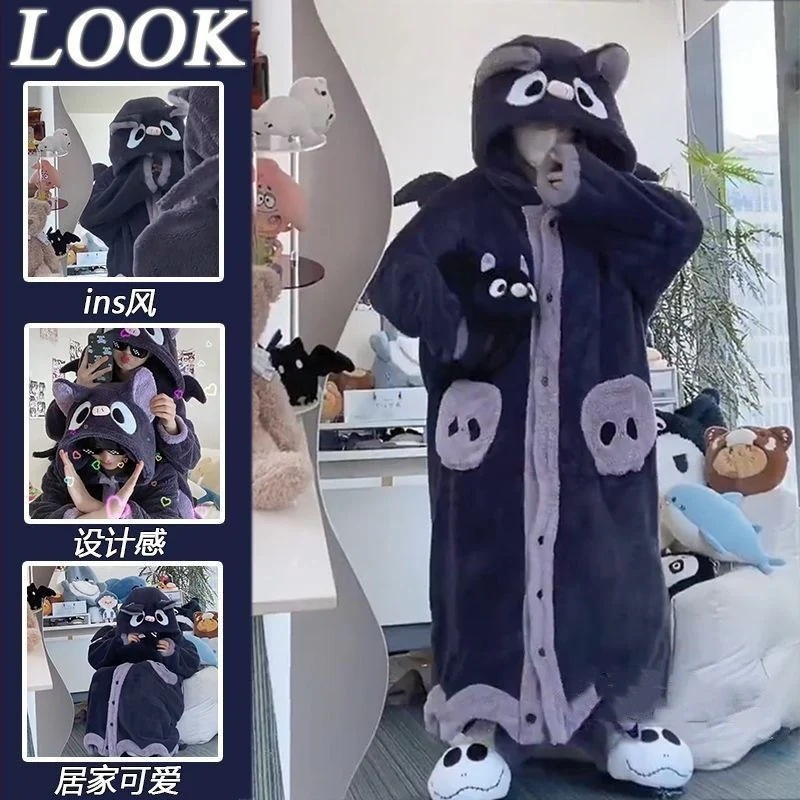 人気パジャマ 可愛いアニメコウモリコーラルフリースパジャマ レディース 冬2026年新作厚手毛布ガウンホームウェアパジャマ着ぐるみパジャマ