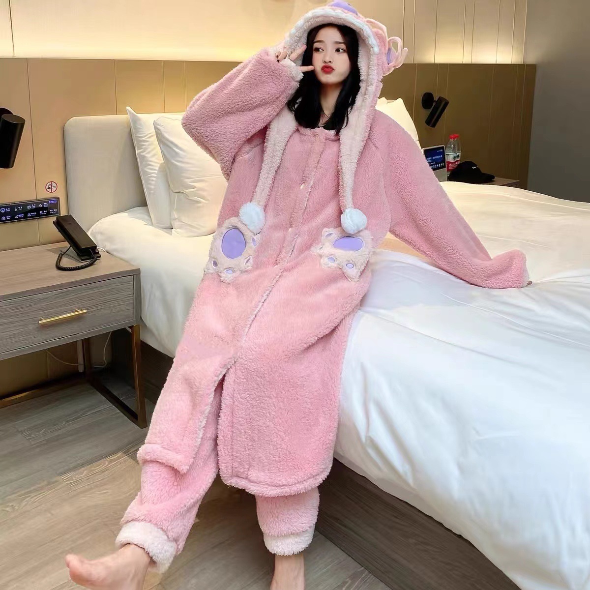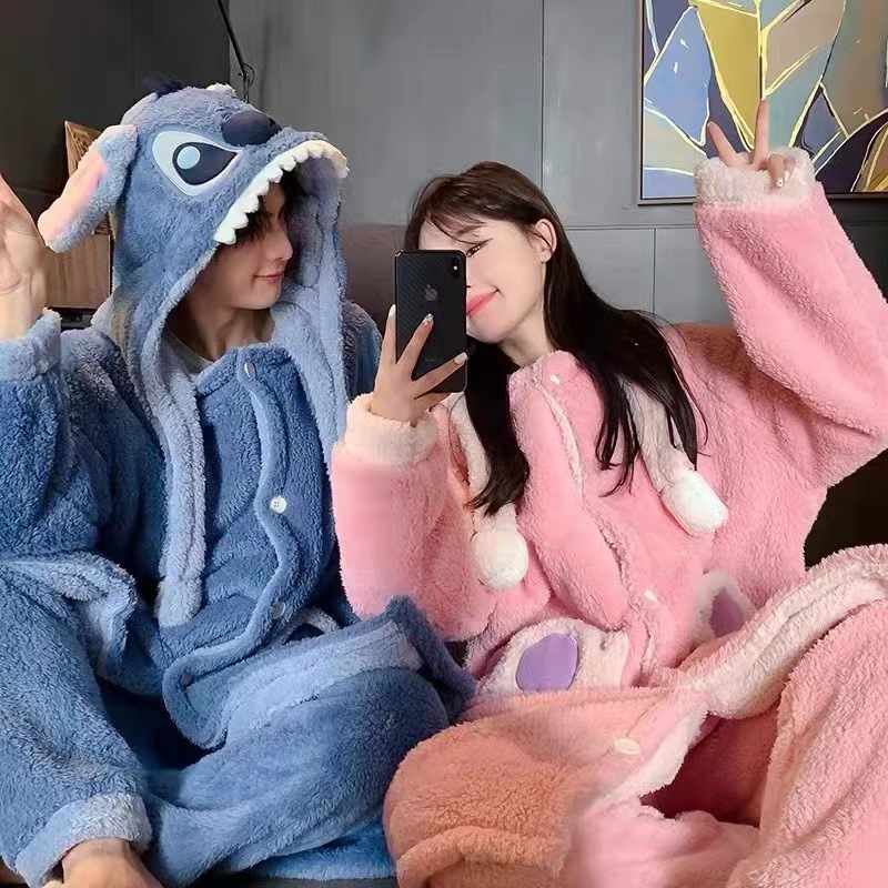 パジャマ女性秋冬の新しいサンゴのベルベットはかわいいスティッチのカップルを厚くしてスーツの家の服を着ることができます