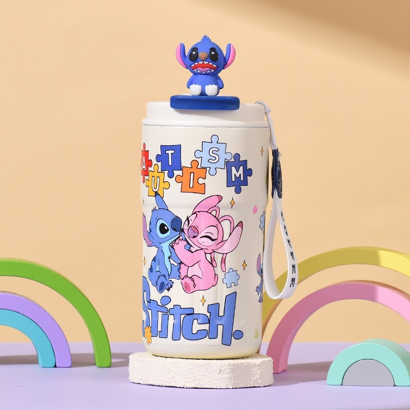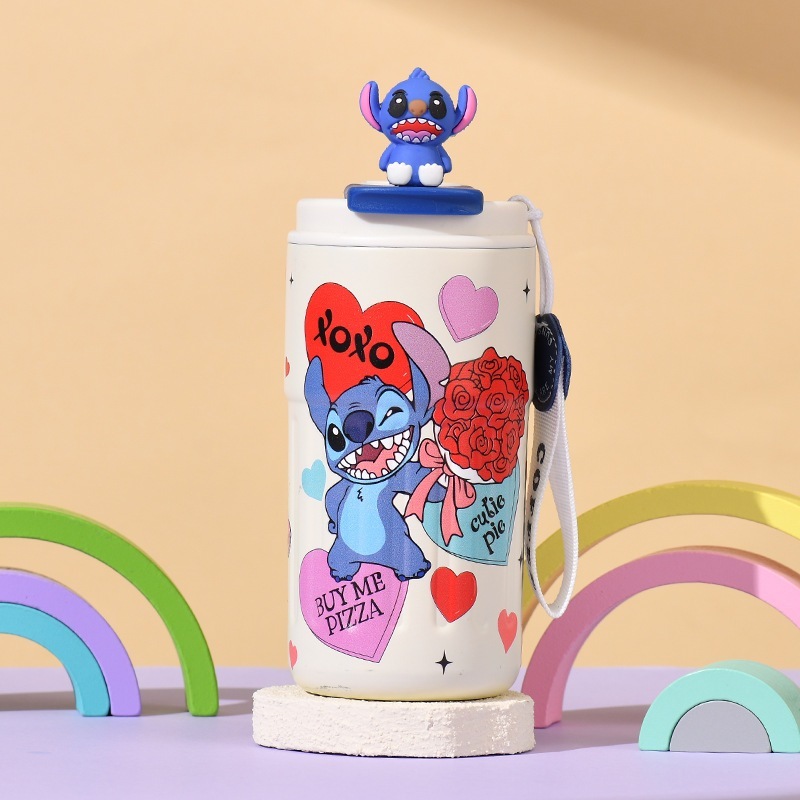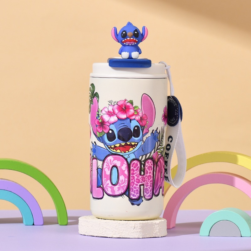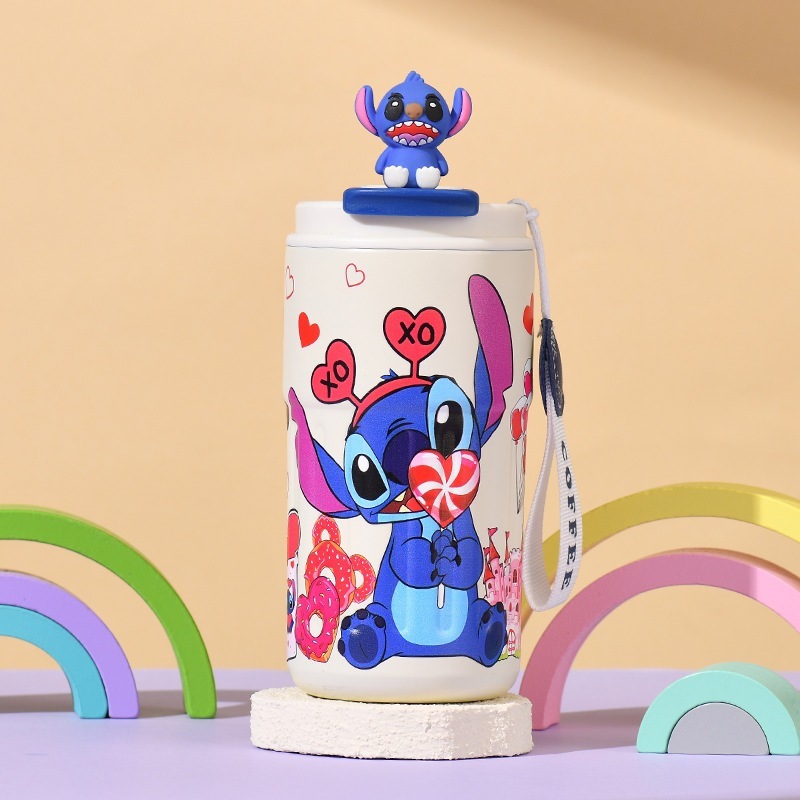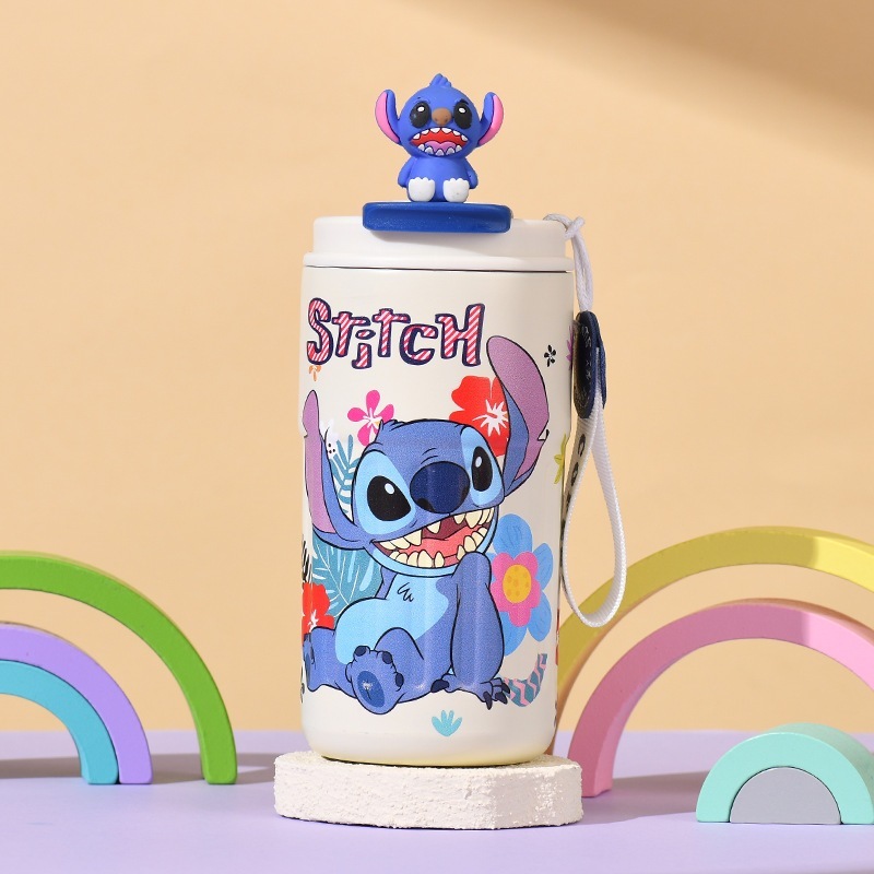 新型スティッチ保温カップアニメ氷覇自動車カップ304ステンレス子供カップ携帯ロープ