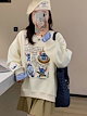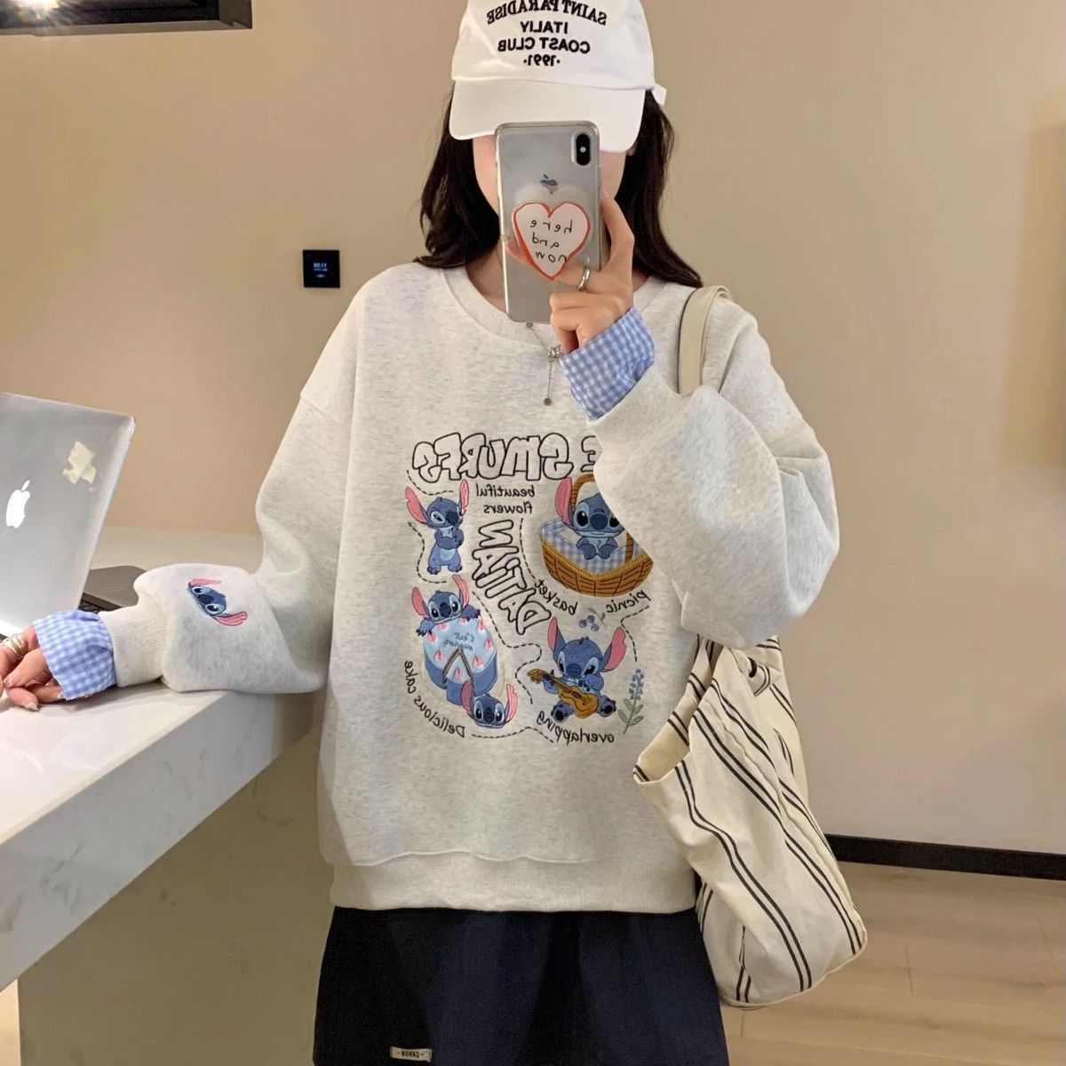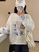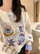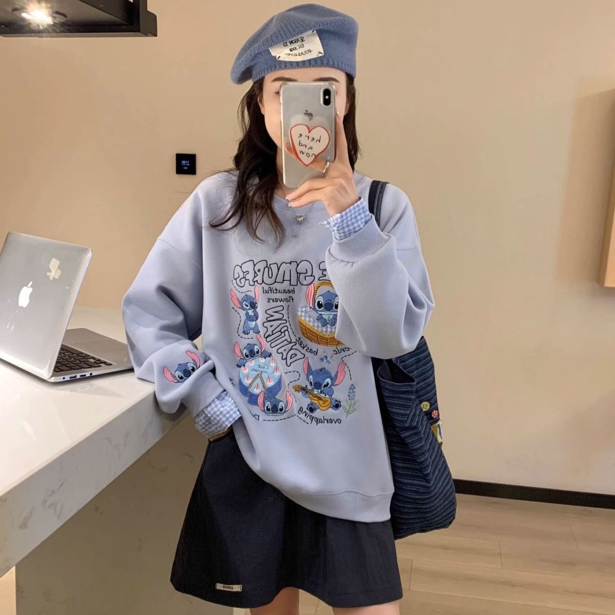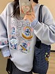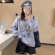 青いアニメ刺繍の丸首の衛衣の男女の韓国版のゆったりしている特別なサイズの300斤のカップルの学生のレジャーの上着