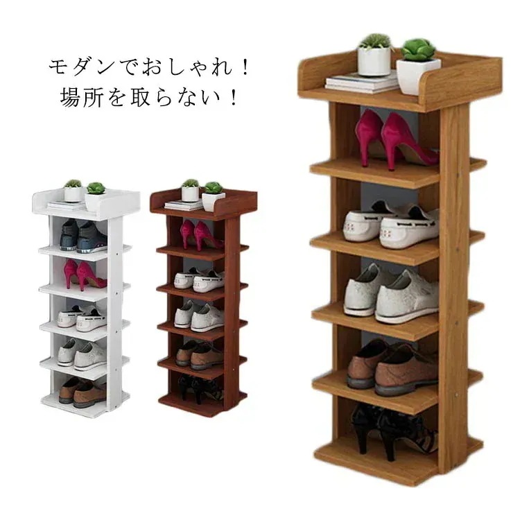 シューズラック 省 スペース 6段 靴箱 靴入れ スリッパラック スリム 靴棚 駄箱 玄関収納 多機能 収納ラック シューズ 木製 インテリア 物置 一人暮らし おしゃれ 感 組立