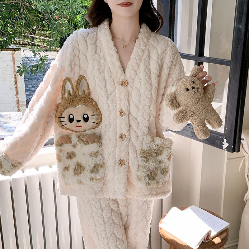 ![[今だけ!超安値挑戦 ]女性用フランネルパジャマスタイルかわいい刺繍漫画薄いベルベット長袖暖かいホーム服セット パジャマ上下セット](https://gd.image-qoo10.jp/li/366/064/8172064366.g_300-w-st_g.jpg)