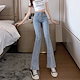 大人気! ワイドパンツデニムボトムス脚長効果 スキニーデニムパンツワイドパンツ復古 ハイウエスト デニムパンツ おしゃれ 百掛け ジーンズ ストレート スリット ワイドパンツKZ12