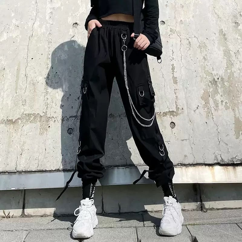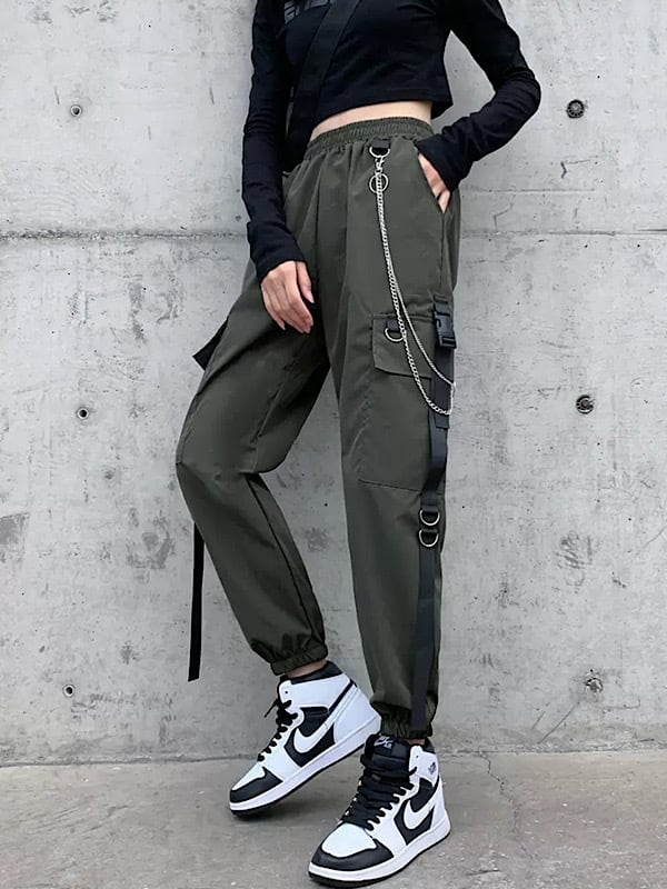 大人気! スッキリ スタイリッシュに チェーン付き カーゴパンツ 裾絞り ジョガーパンツ ワークパンツ 韓国っぽ ストリート カジュアル スポーティー ライク