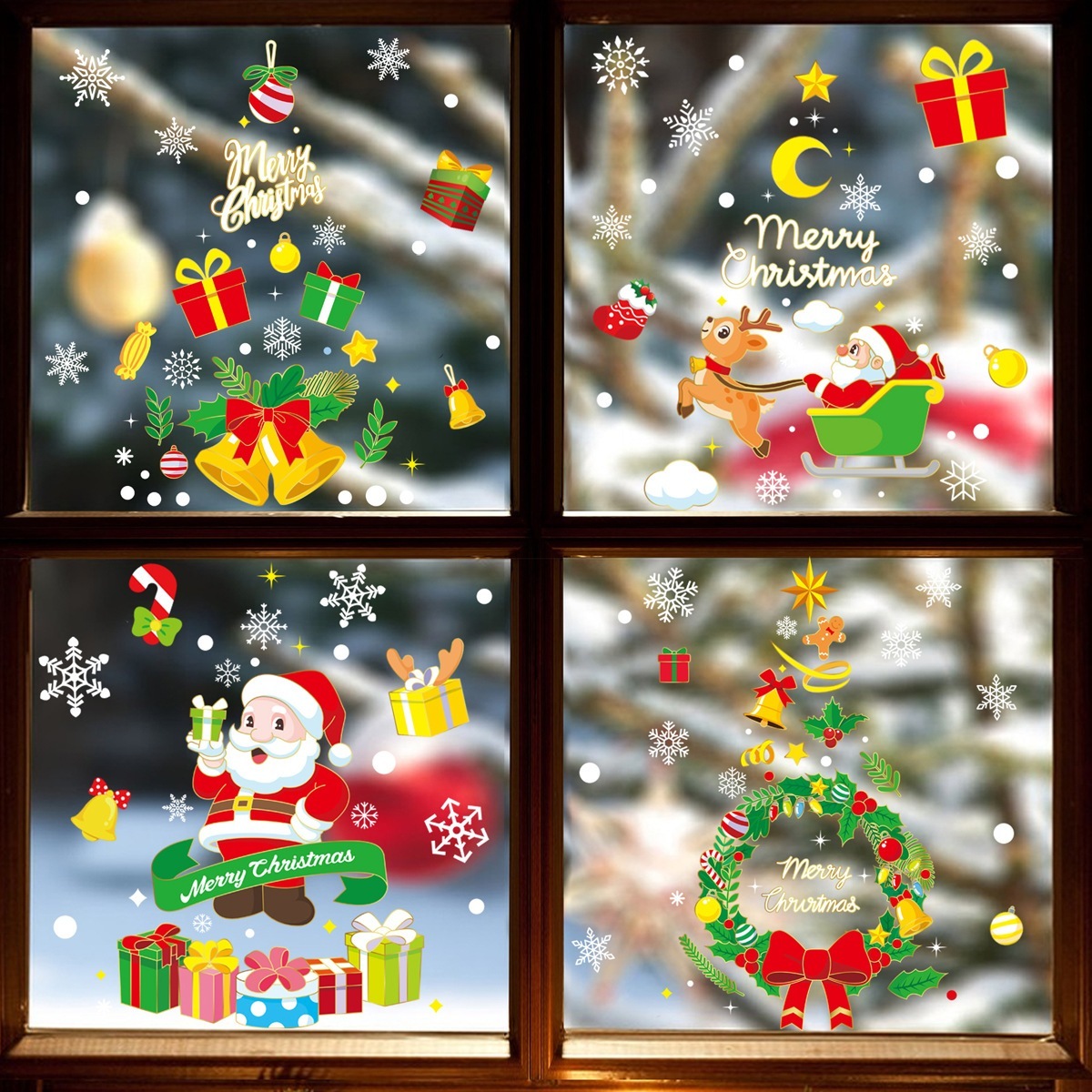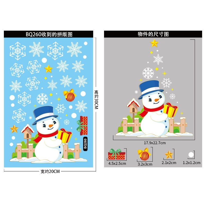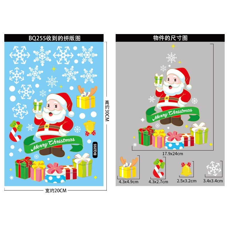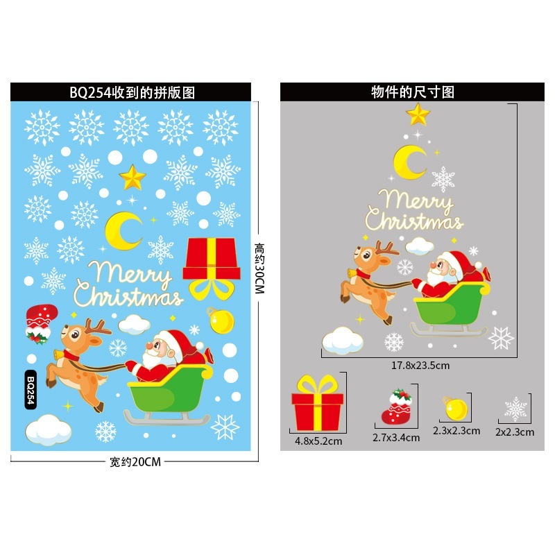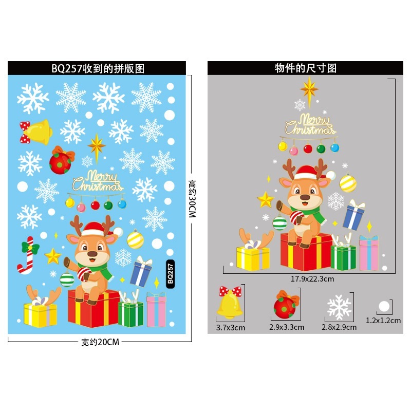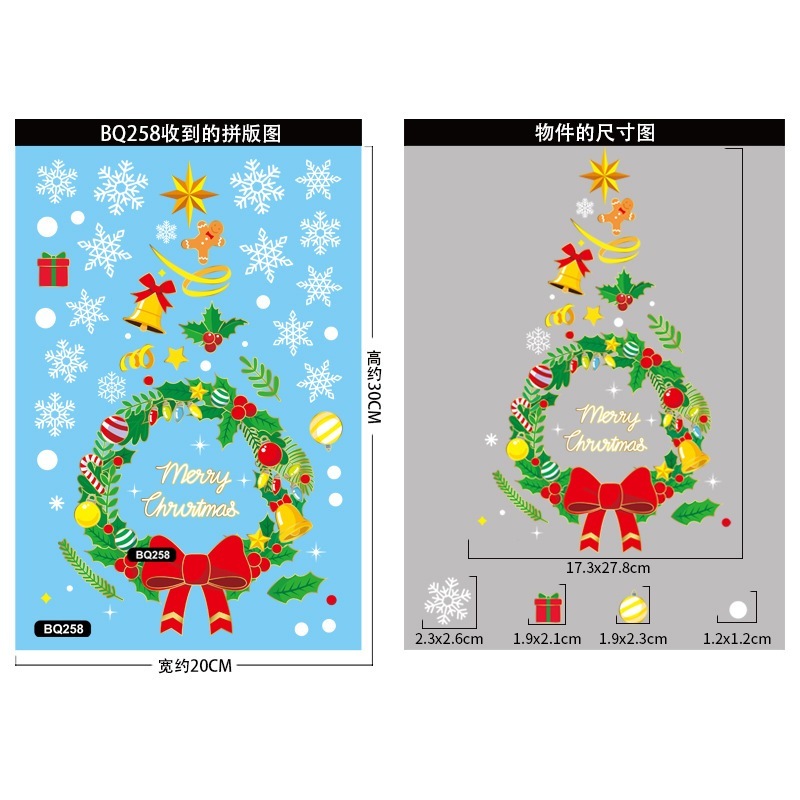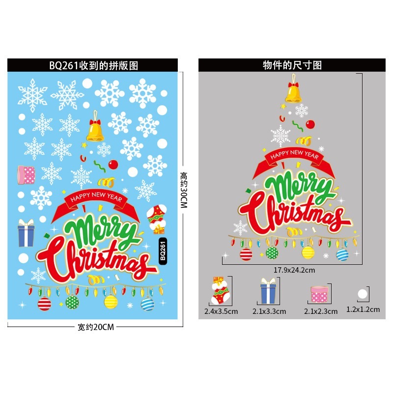 クリスマスデコレーション 金色クリスマスツリー静電気ステッカー デパートガラスショーウィンドウデザイン メリークリスマス・雪片ステッカー