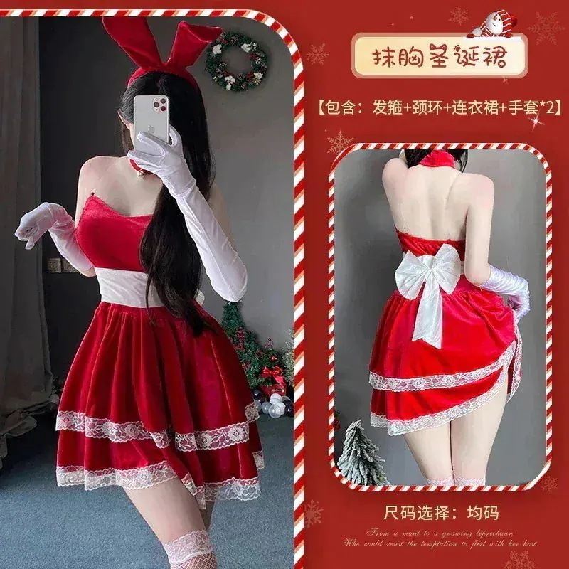 サンタコス クリスマス コスプレなランジェリーセクシーなウサギの女の子の制服の誘惑セクシーなの衣装女性共同プレイスーツ新年の戦争ドレス