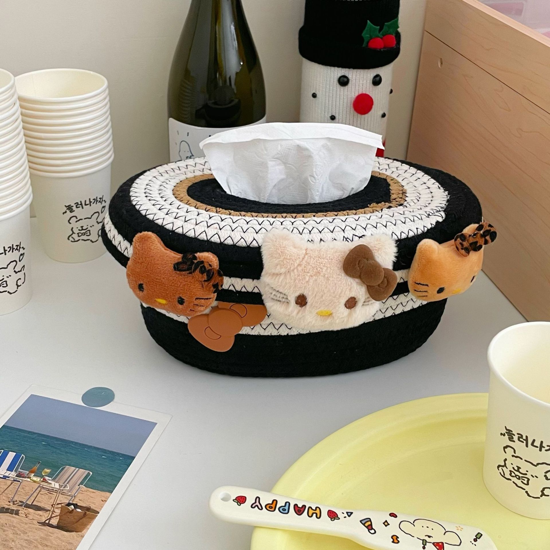 コットン編み猫ティッシュボックス家庭用寝室リビングペーパーボックスナプキンボックス雑物装飾収納バケツ