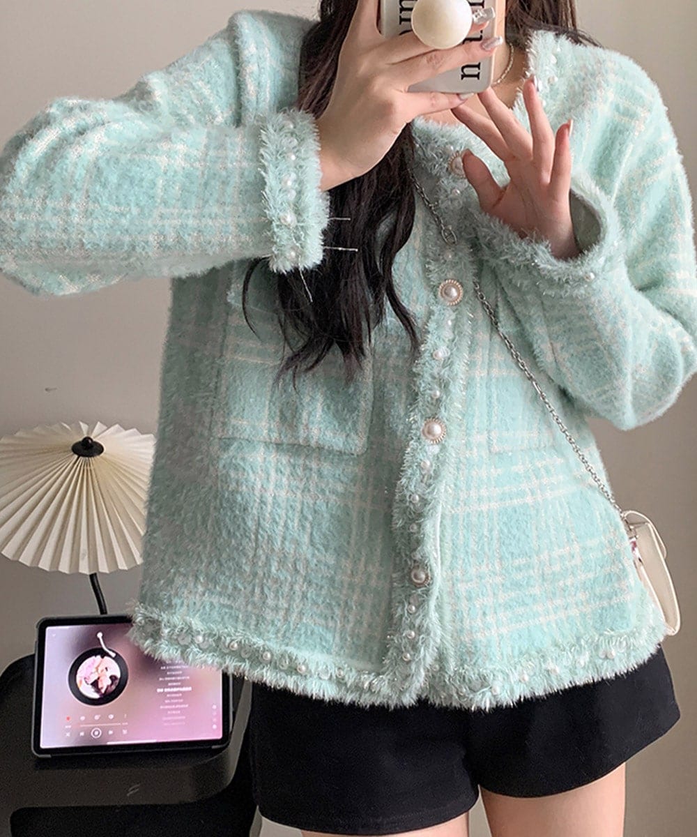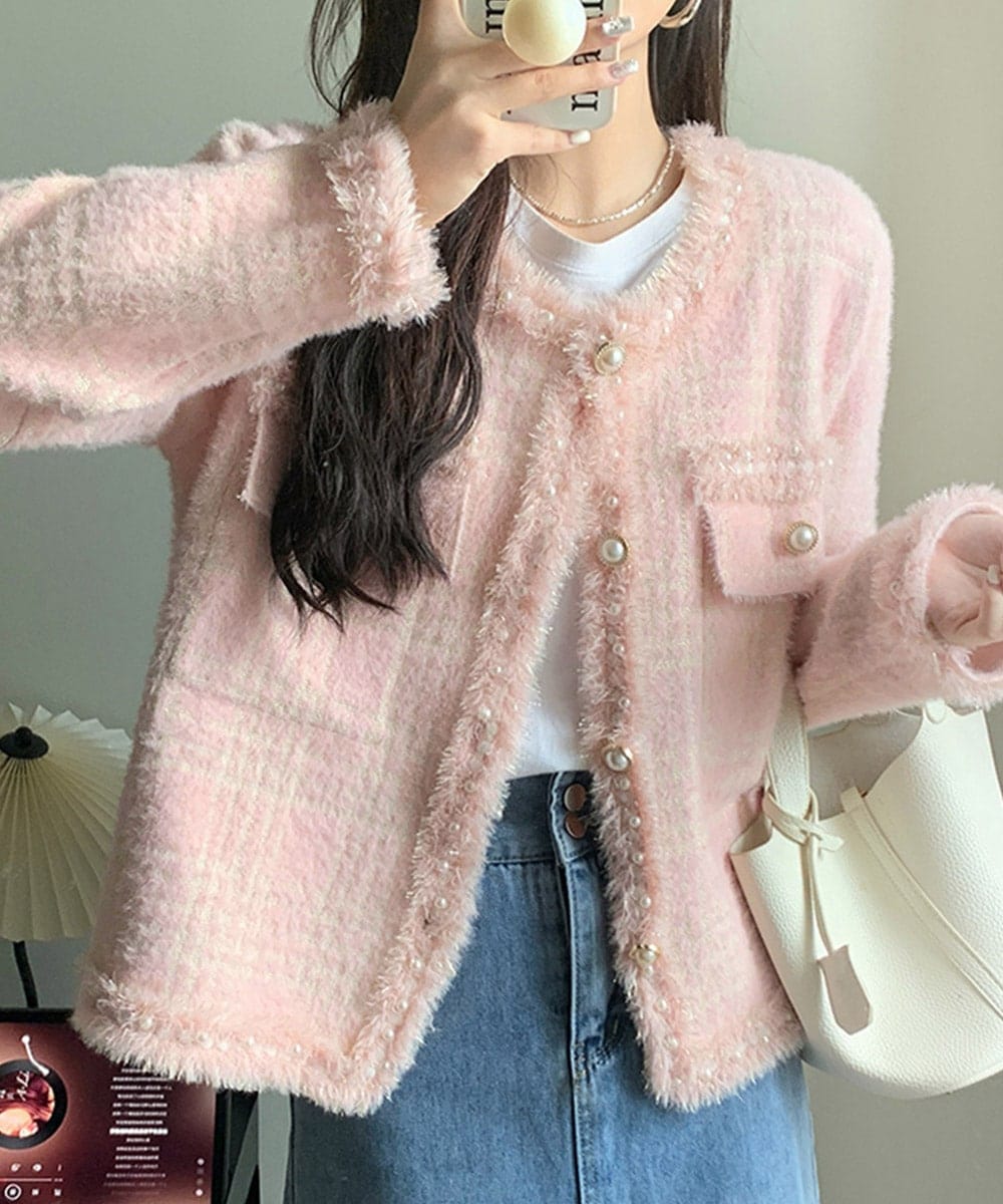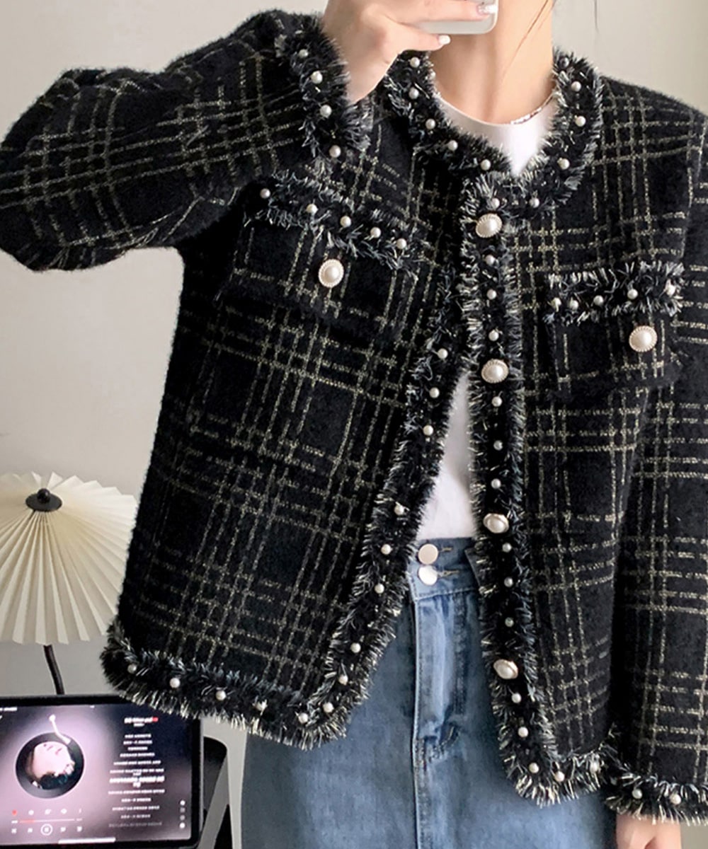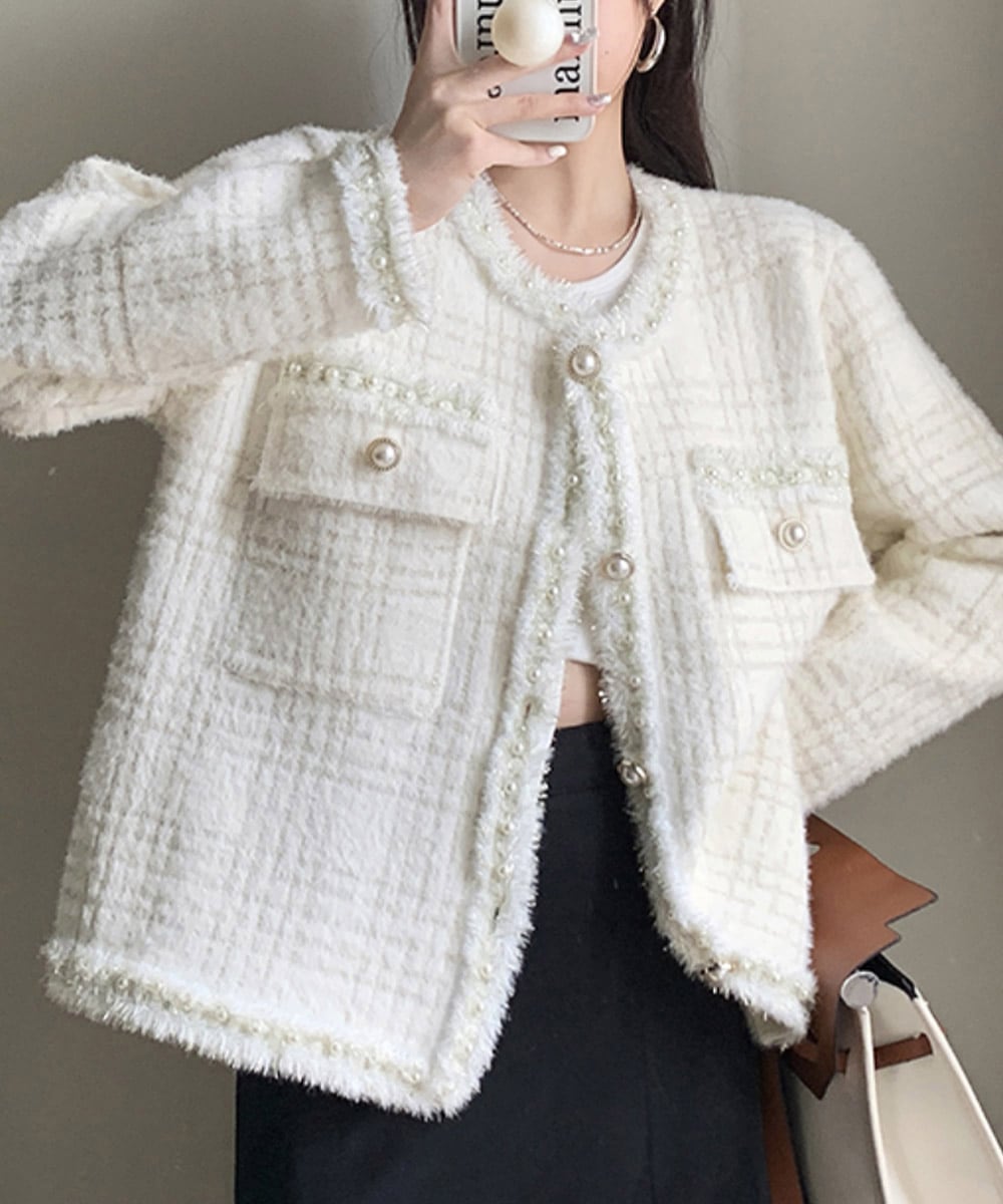 【迅速出荷】冬アウター ラメツイード風ジャケット 韓国ニット秋冬 韓国ファッション