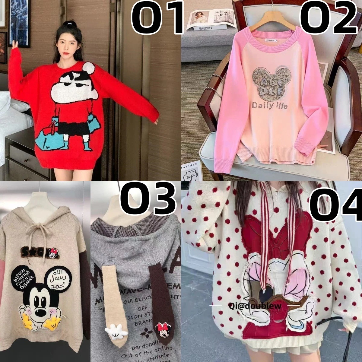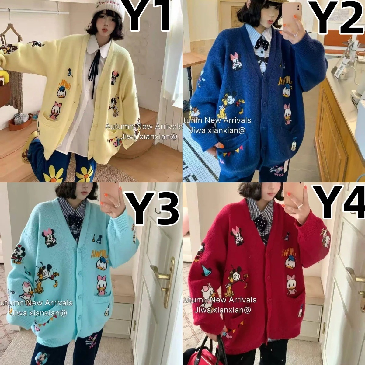 新作ニットピーチミッキードナルドダック2025ミニー秋冬キャラクター刺繍ニットレディース春秋冬セーターコートニット