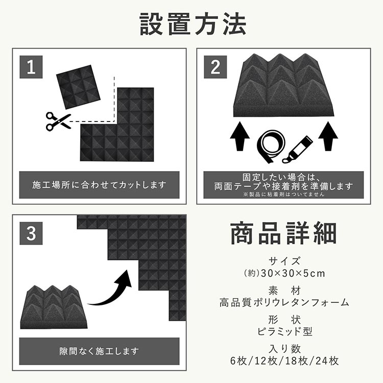 吸音材 防音シート 防音材 吸音シート防音壁 24枚 5cm 極厚 賃貨安心 超軽量 難燃性 消音 騒音 音漏れ対策に 吸音対策 室内装飾 sg151