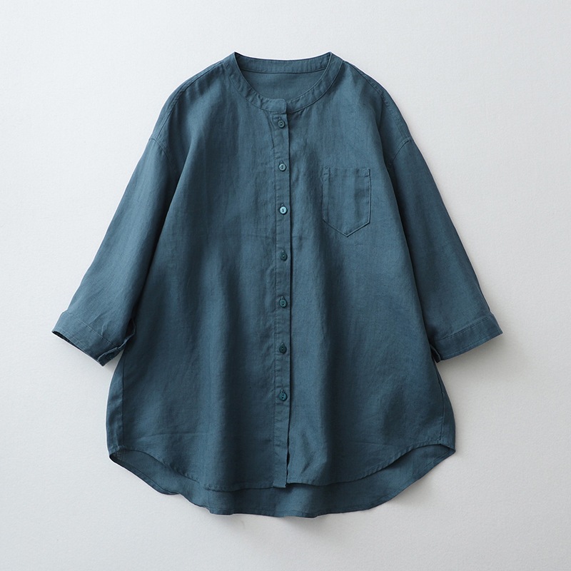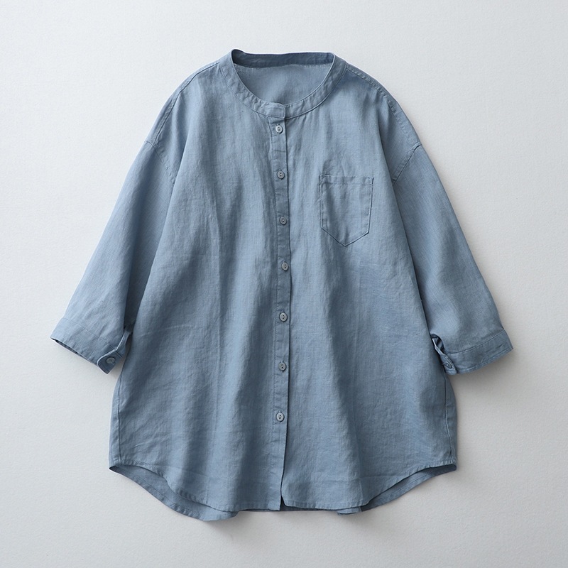 【2枚で300円OFF!】即納 ブラウス シャツ レディース 七分袖 バンドカラー 綿 コットン トップス まぁるいカーブのアトリエブラウス 春服 秋服 ゆったり 母の日