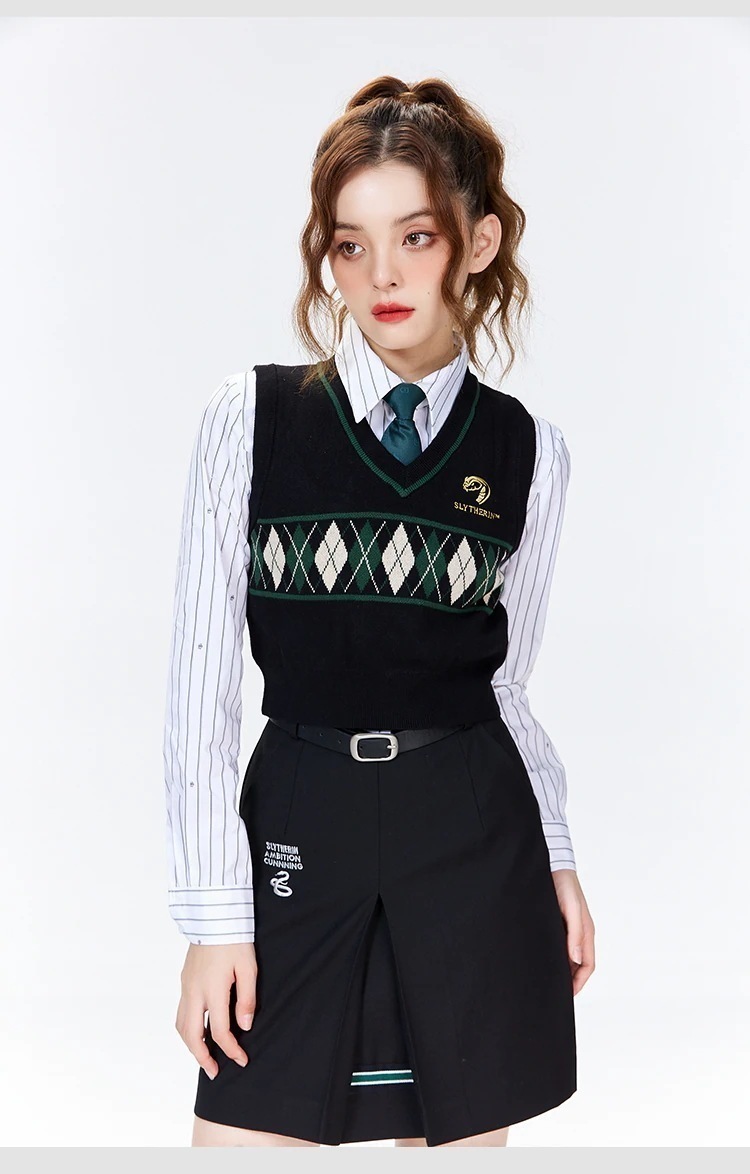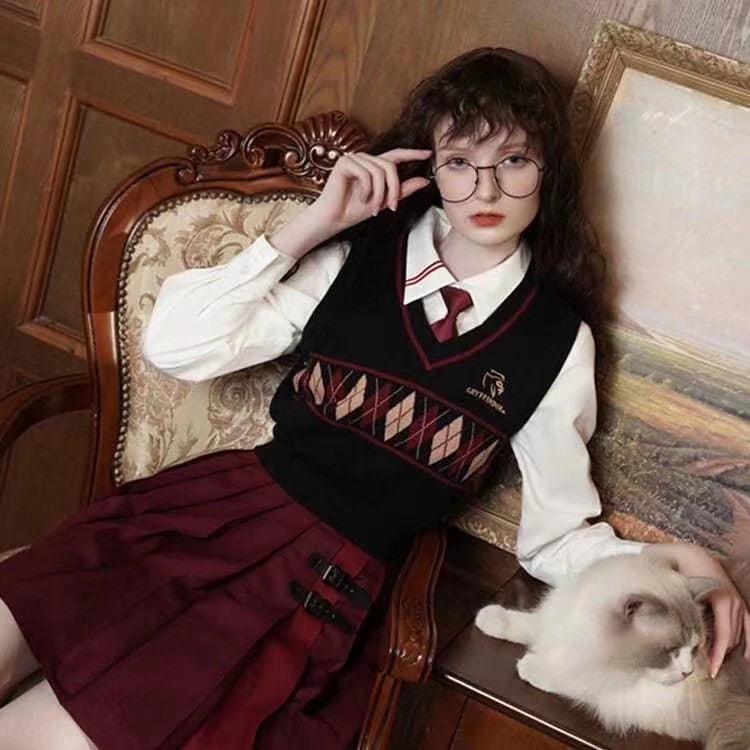 韓国 ハリーポッター ジョイント 制服 カレッジ アメリカン ダイヤモンド ニット ベスト 学生 セーター トップス レディース スーツ 涼しく楽ちんセットアップ1478173