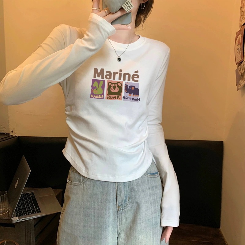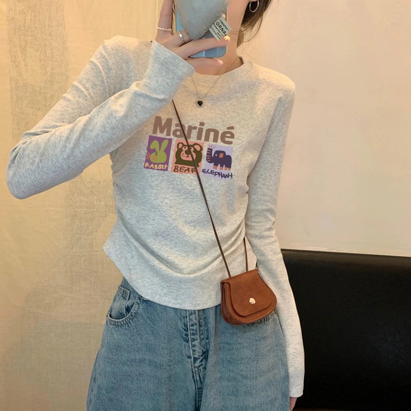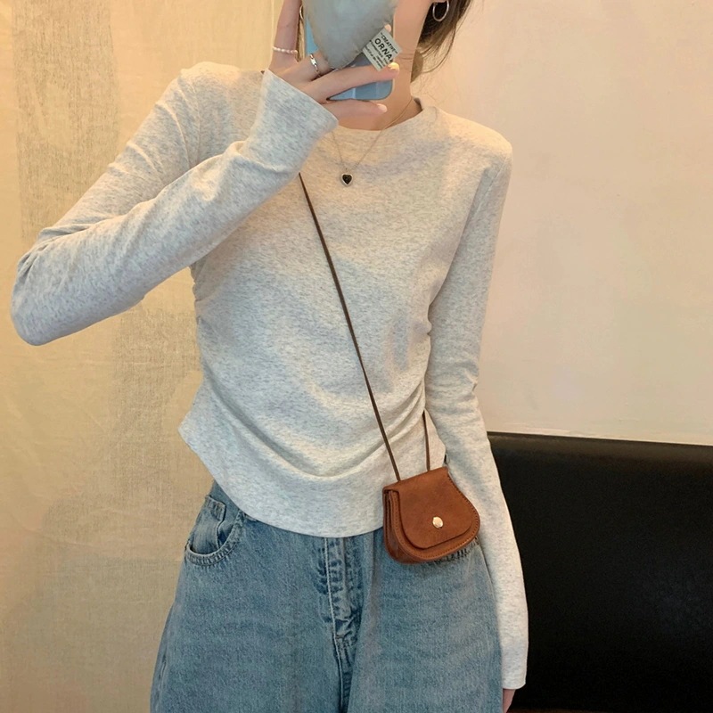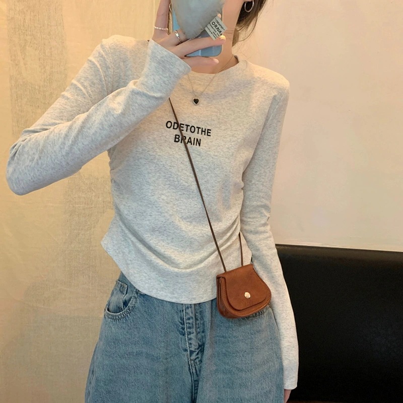 ホットガールスタイル女性用長袖Tシャツ初秋新デザインプリーツウエスト痩身インナーショートトップ