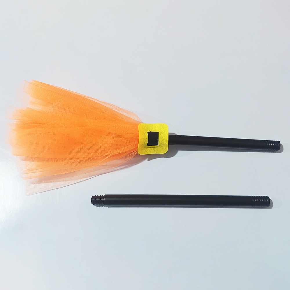 ハロウィーンの装飾魔女魔法のほうきパーティーゴーストフェスティバル雰囲気レイアウト小道具紫メッシュオレンジほうき