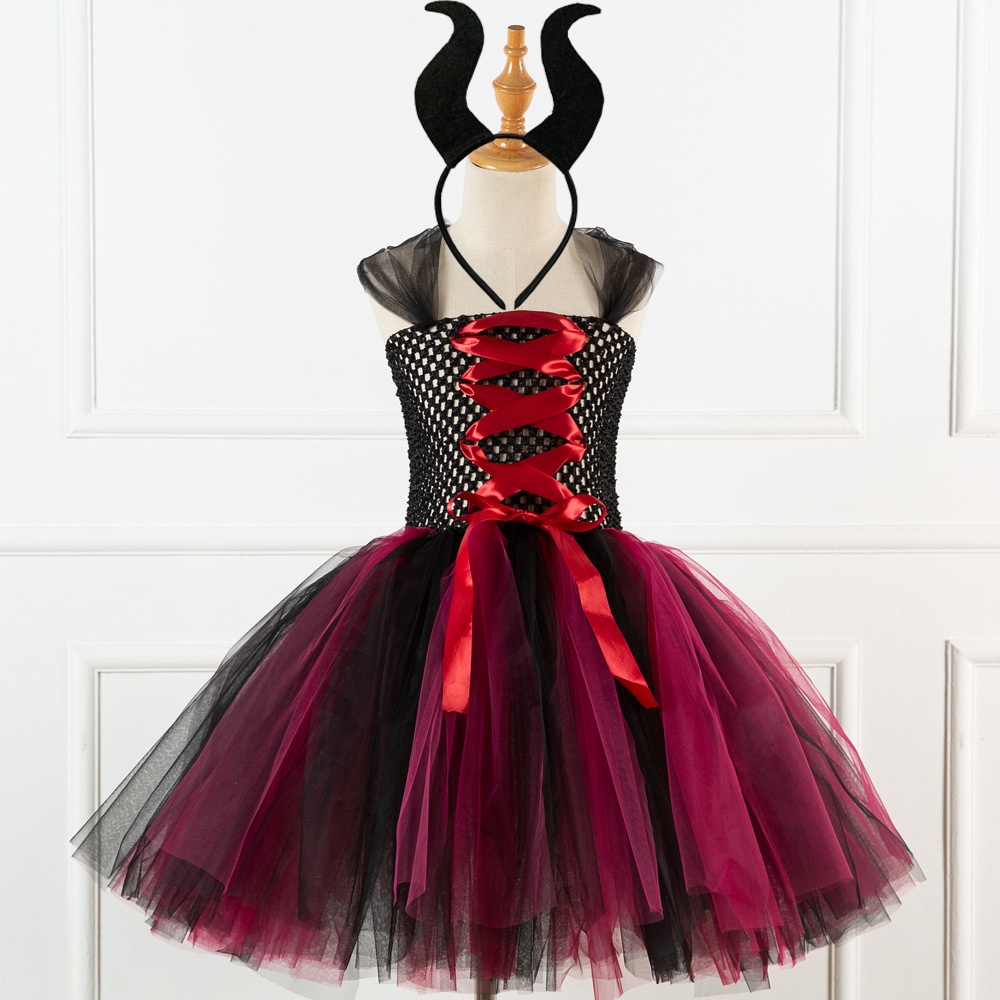 ハロウィン子供用魔女ロールプレイコスチューム女の子コスプレ魔法使いロングスカートスーツメッシュ