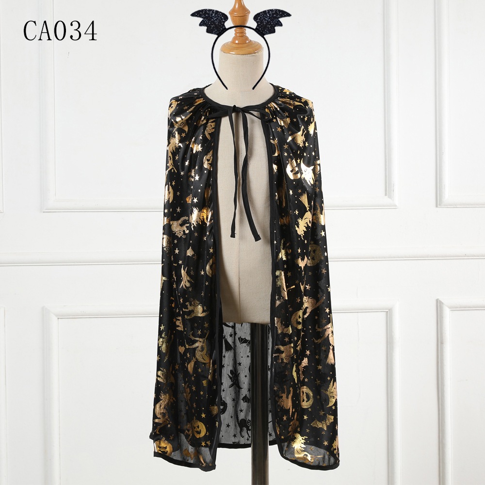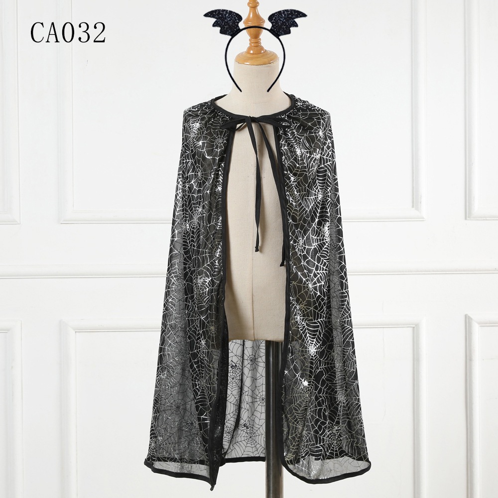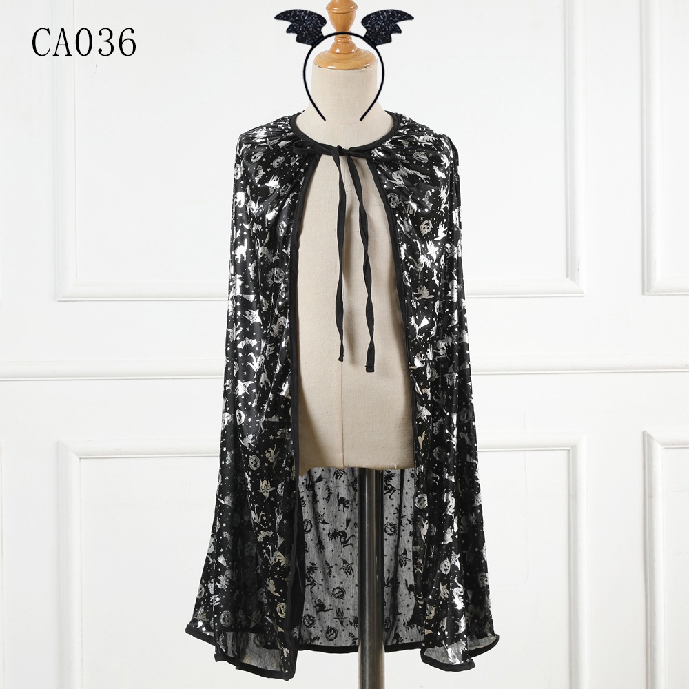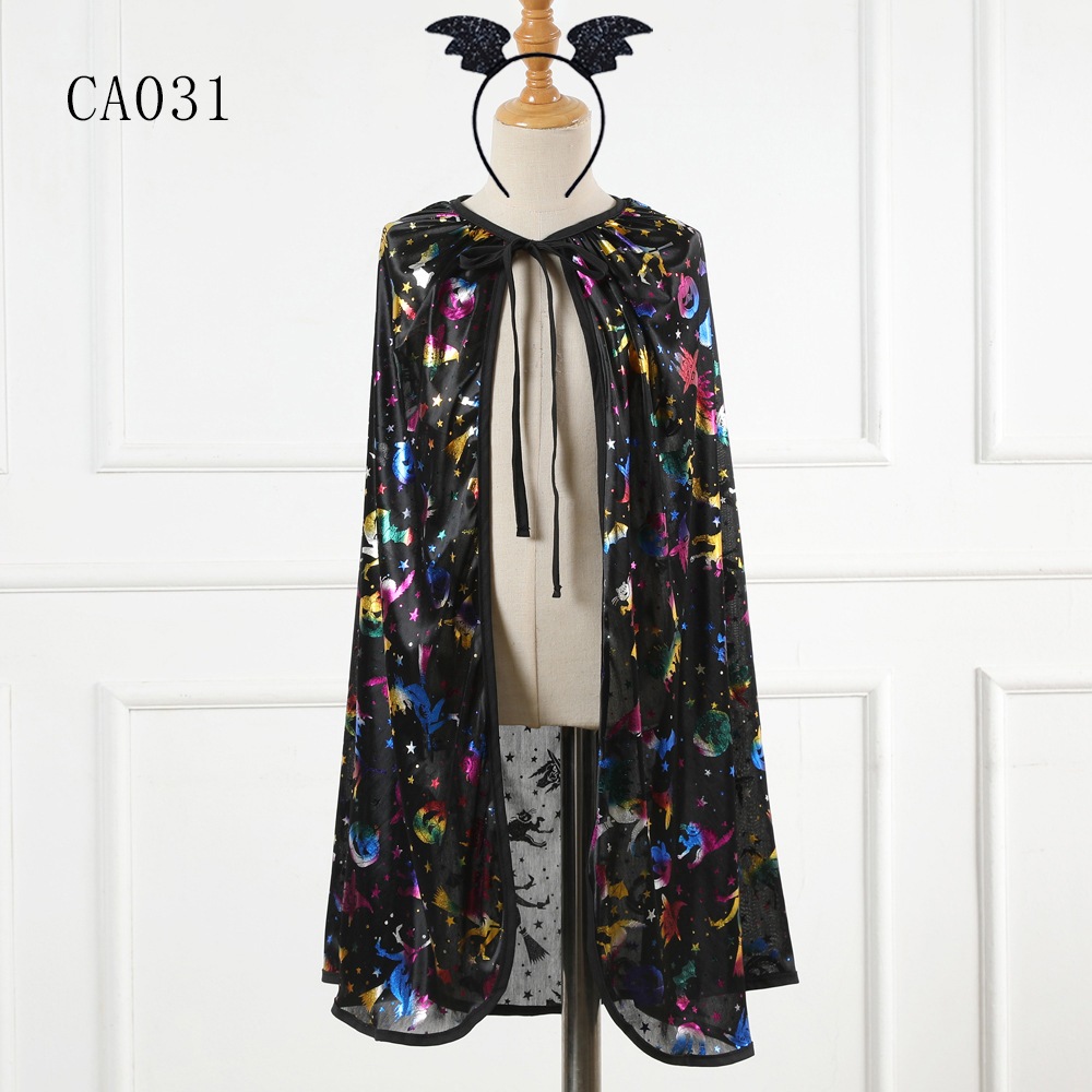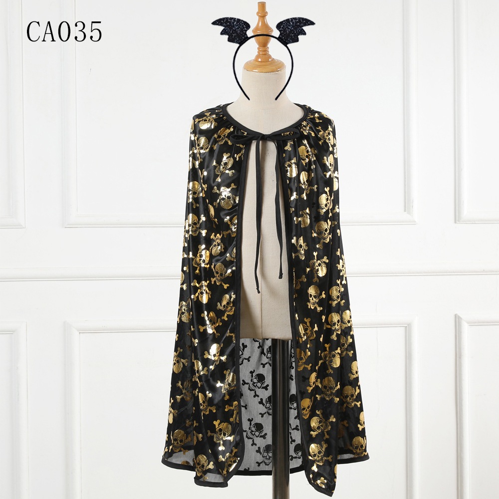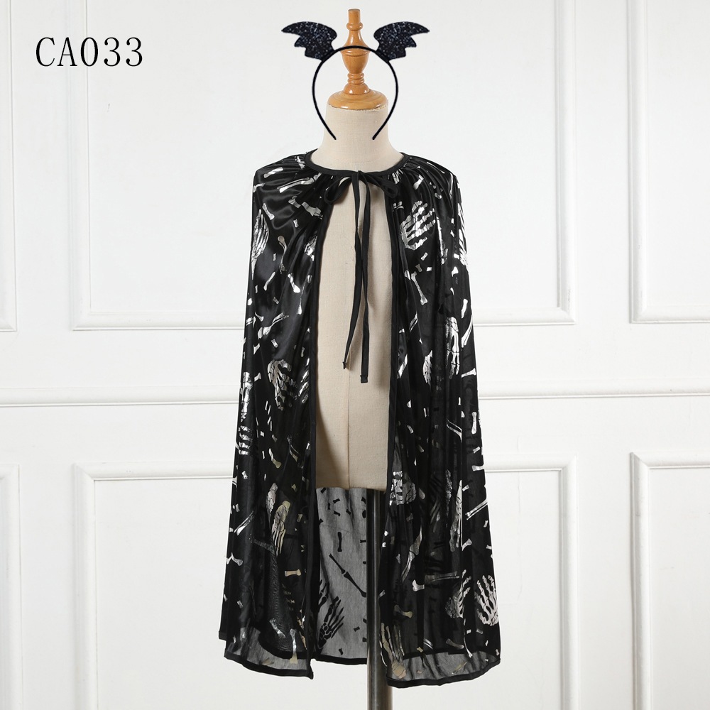 2025年新作 ハロウィン 子供用ケープ プリント スカル レースアップケープ パフォーマンス パーティー 子供用コスチューム