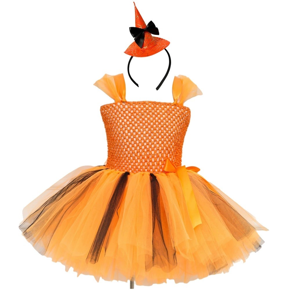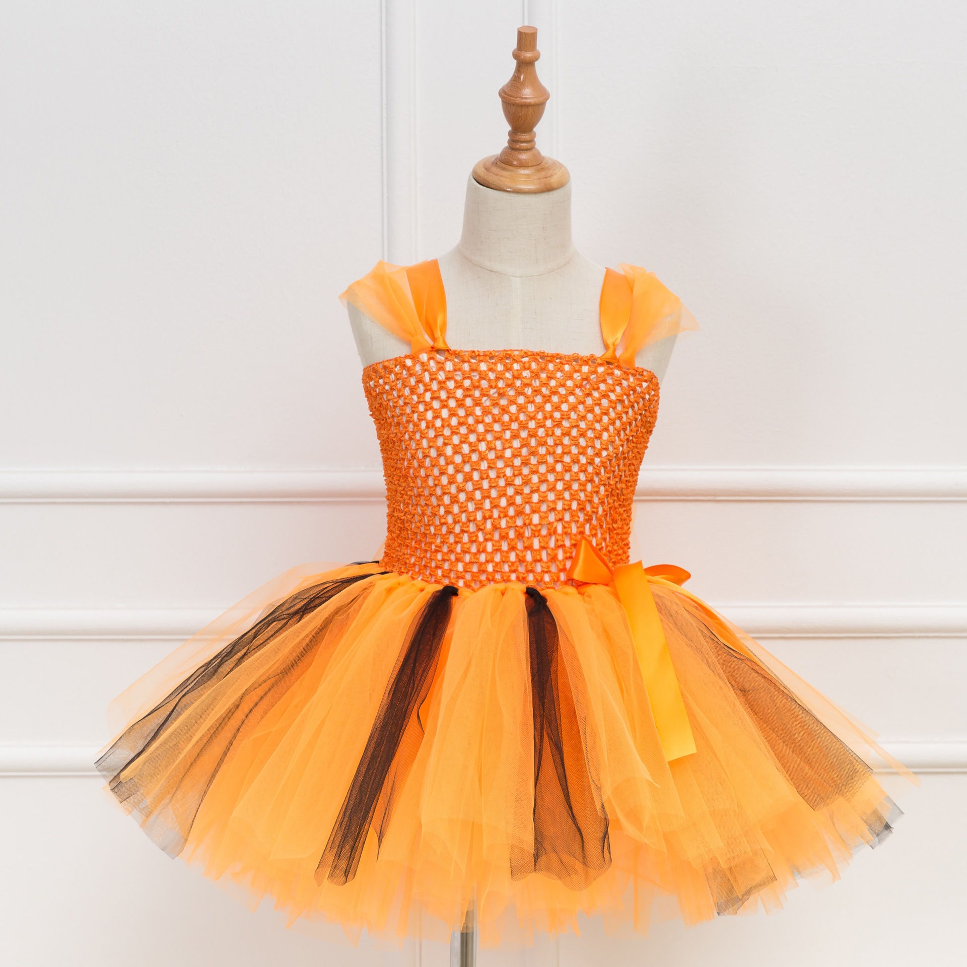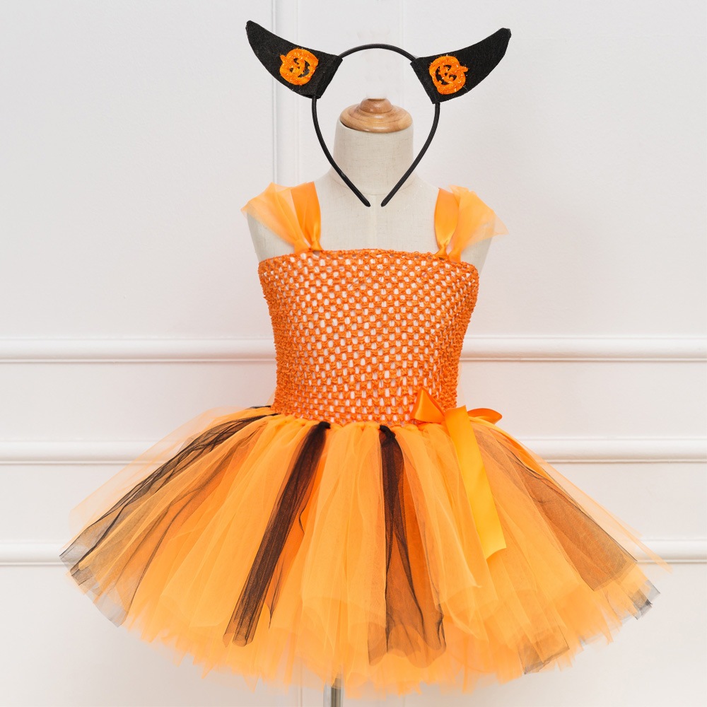 ヨーロッパとアメリカの女の子のプリンセスドレスノースリーブパンプキンカラーハロウィンチュチュスカートヘッドドレスメッシュドレス服