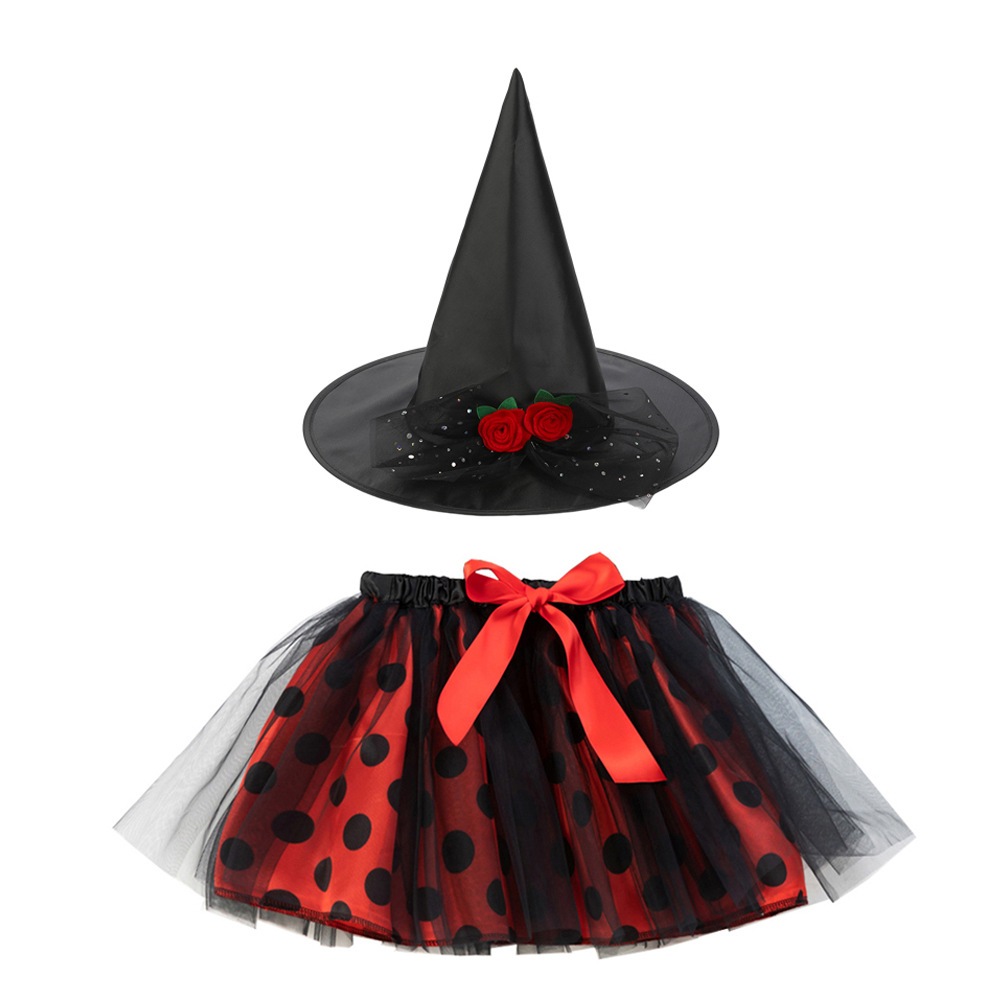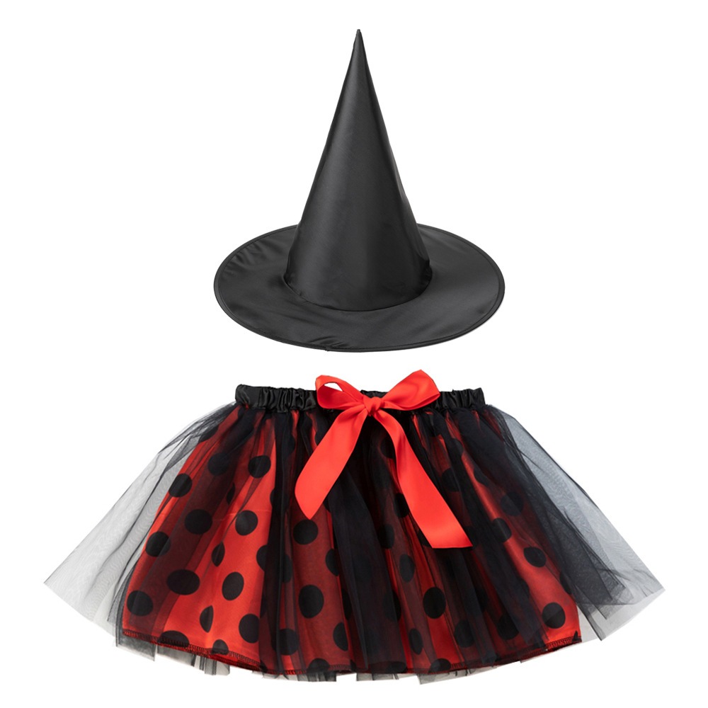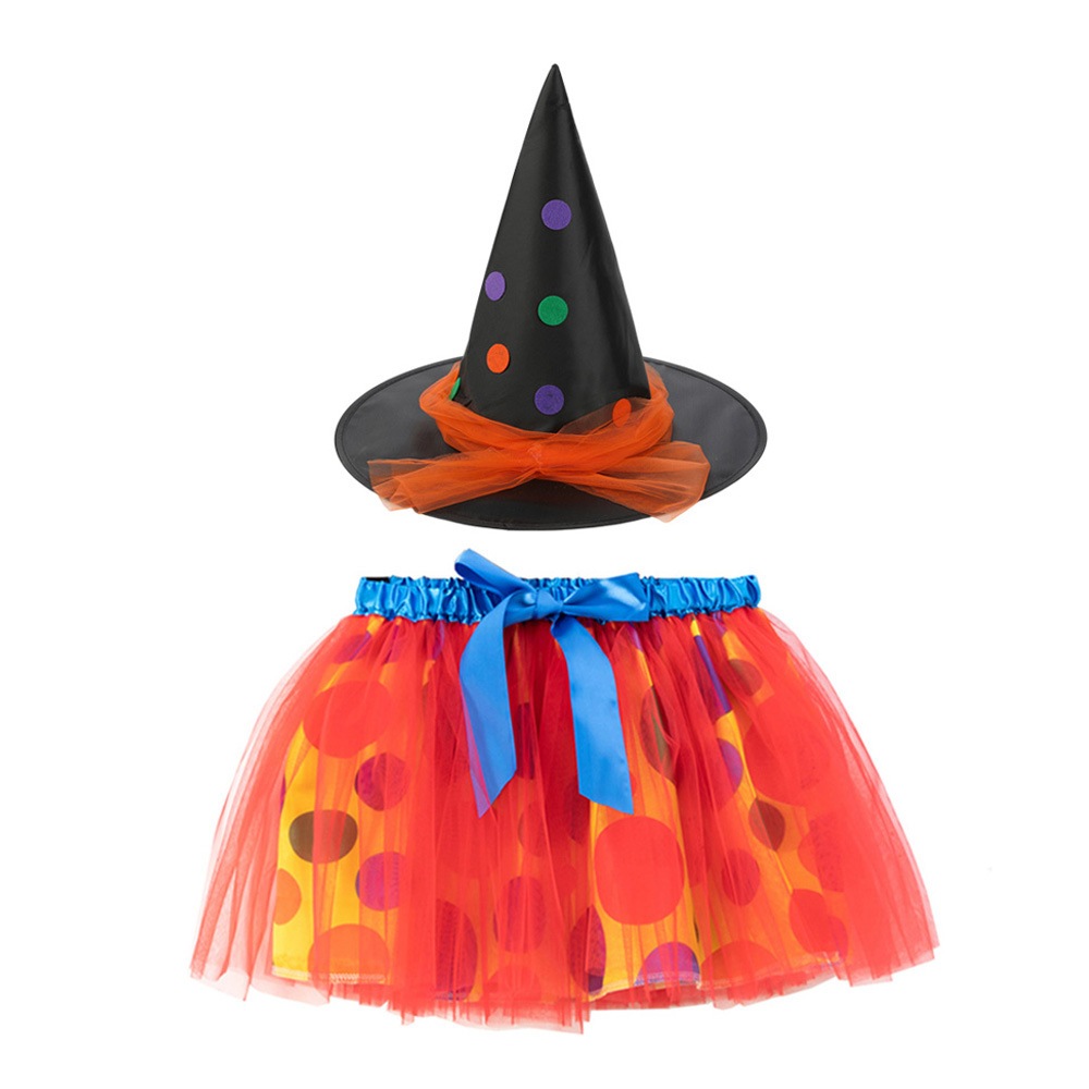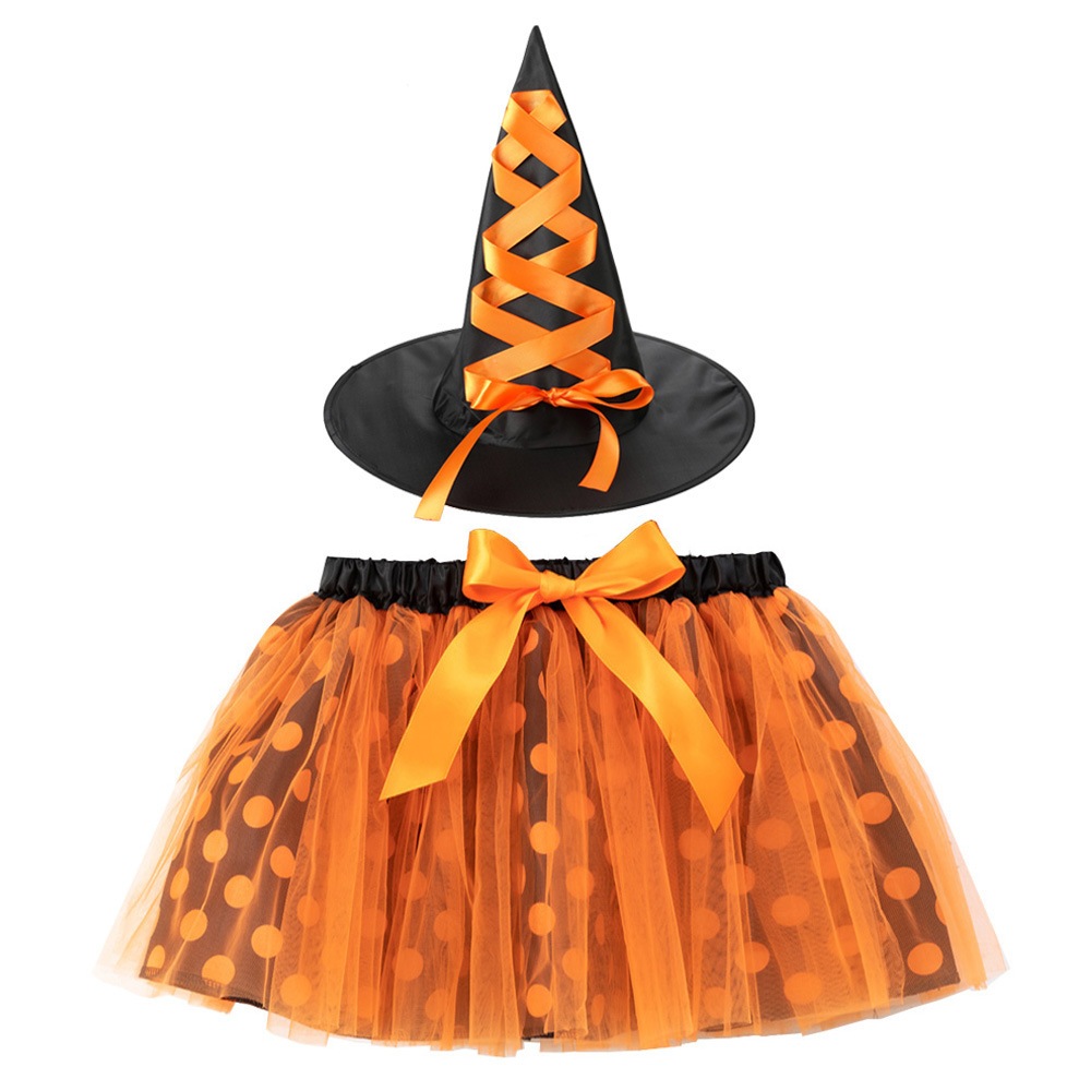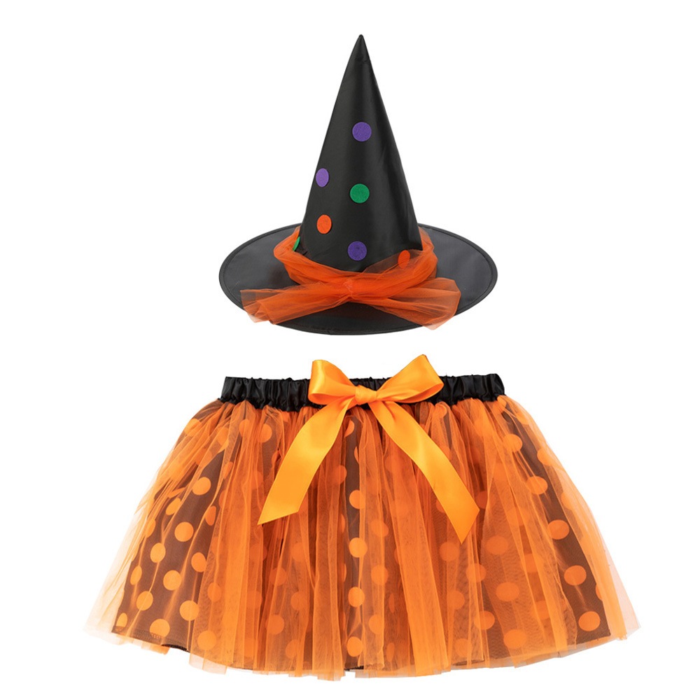 欧米の子供服2025新製品メッシュハロウィン水玉ショートスカート魔女帽子小さな子供用スカート夏