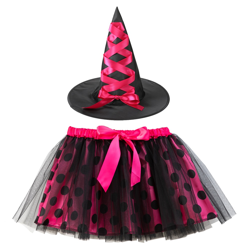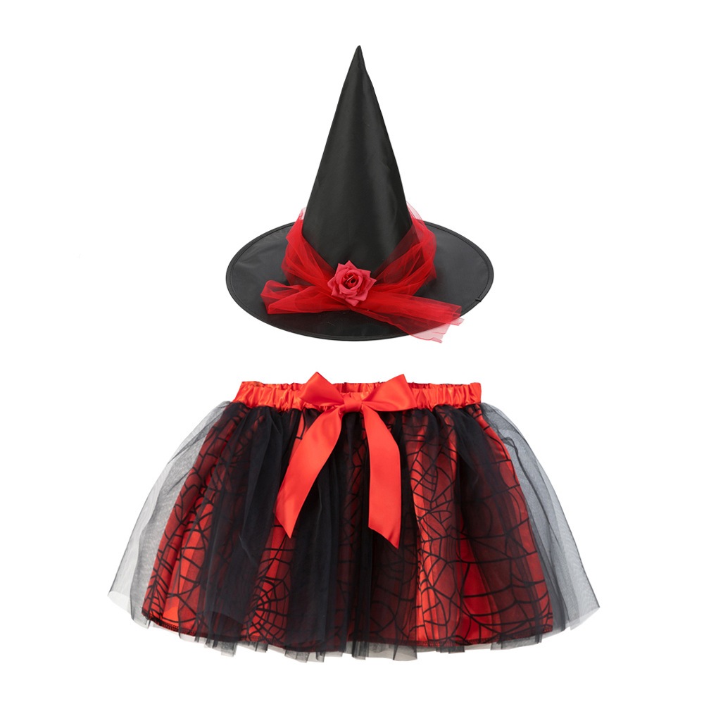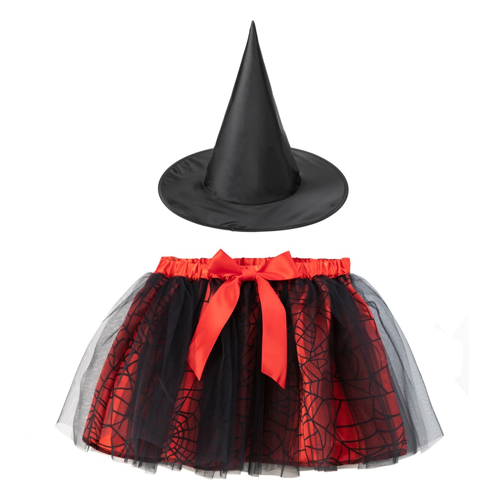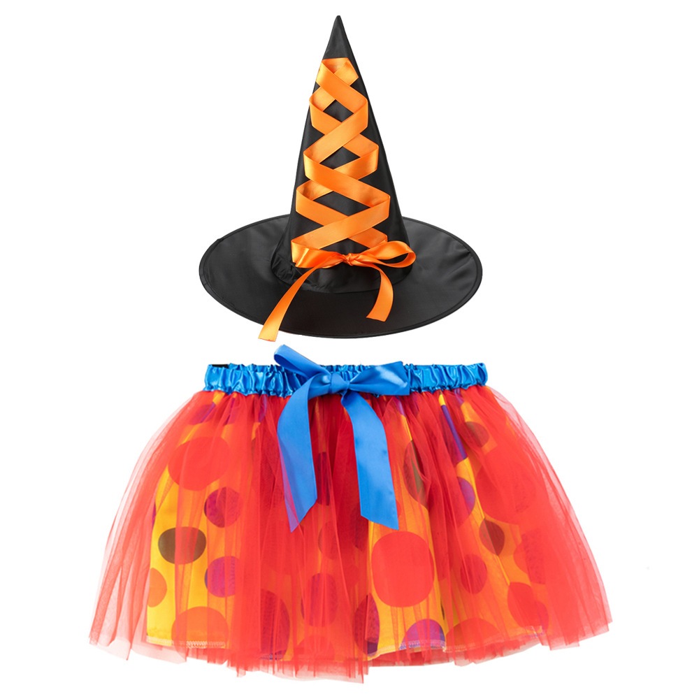 欧米の子供服2025新製品メッシュハロウィン水玉ショートスカート魔女帽子小さな子供用スカート夏