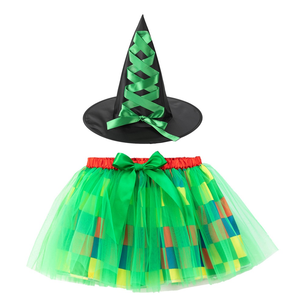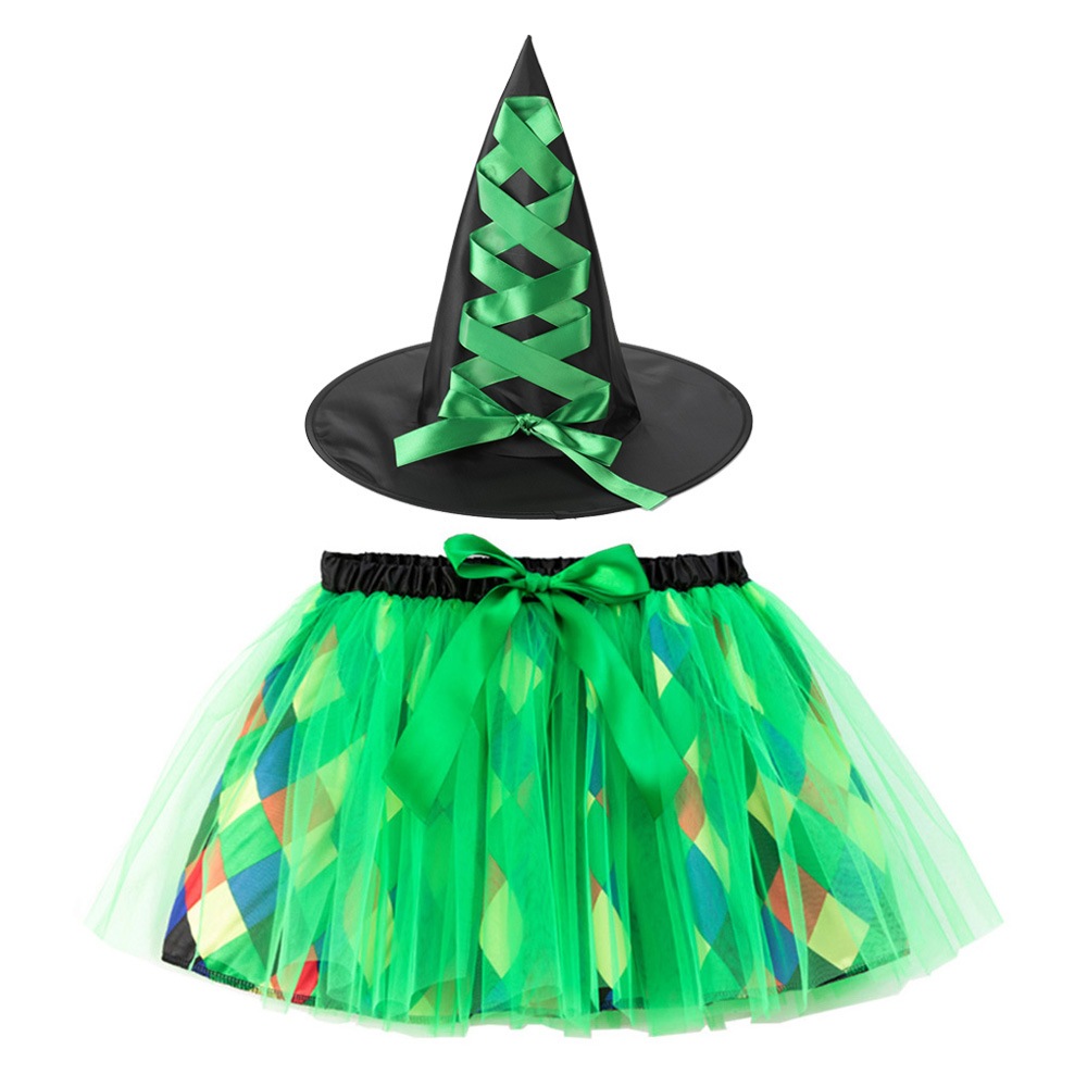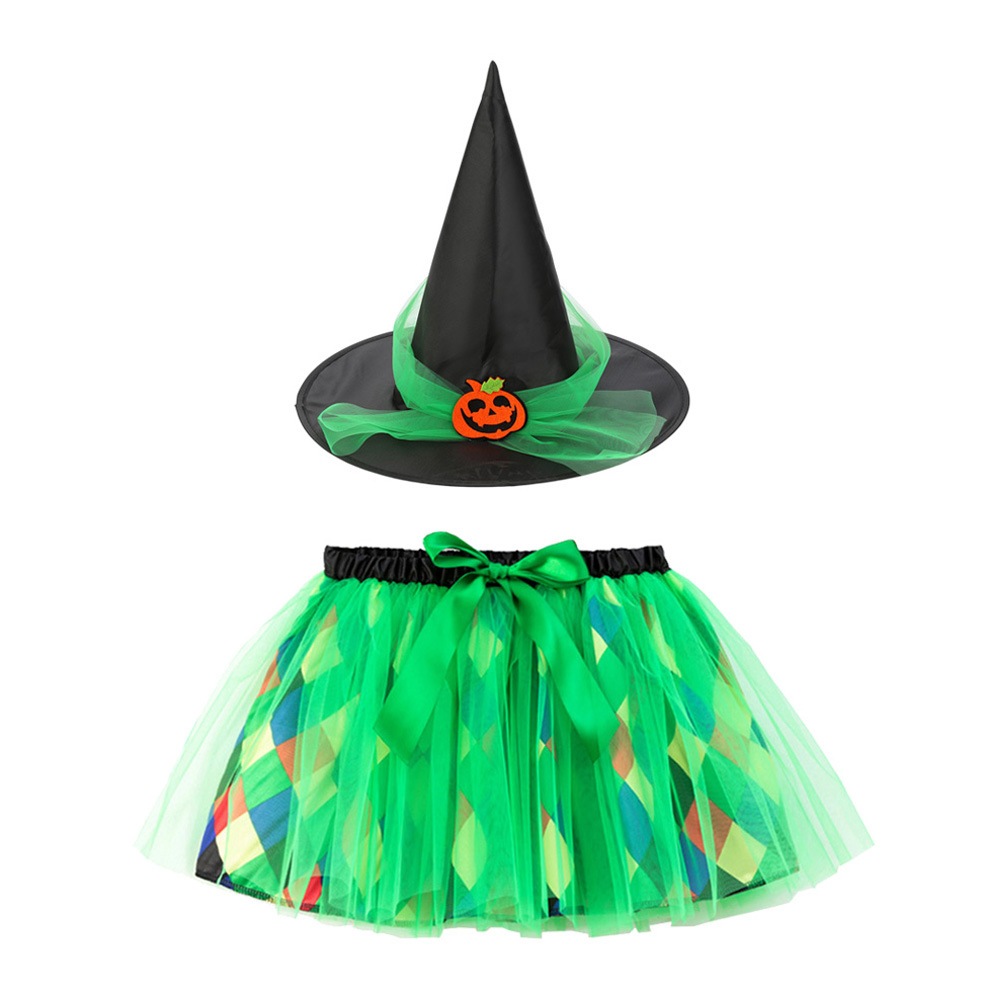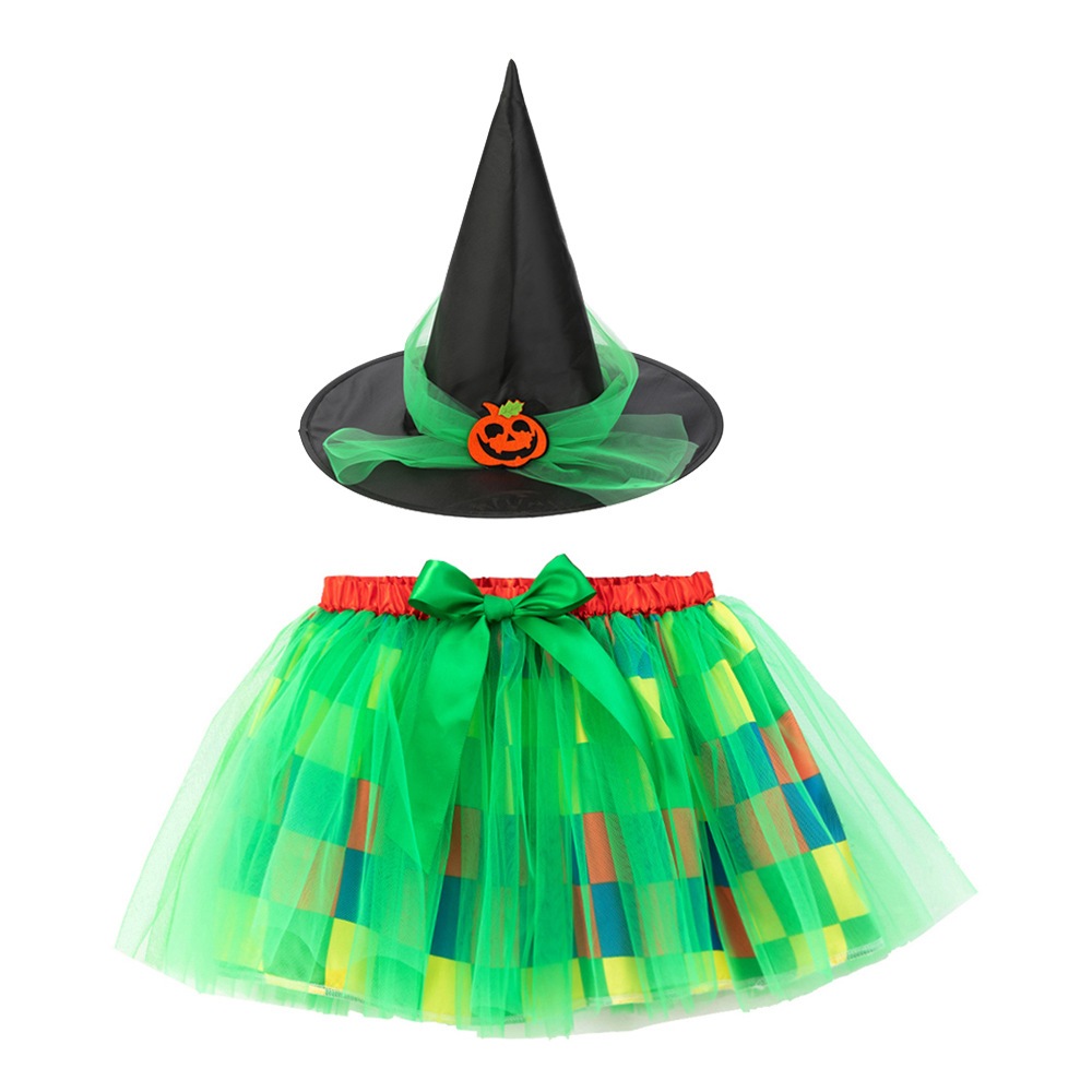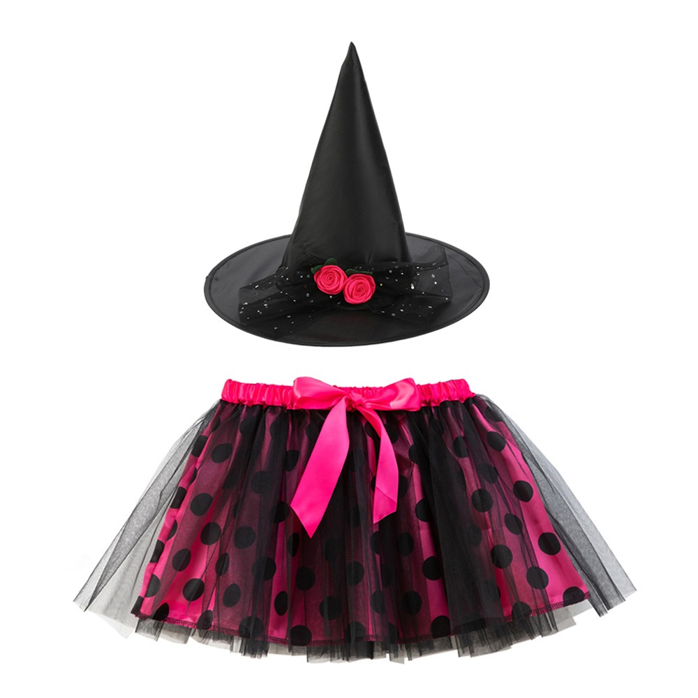 欧米の子供服2025新製品メッシュハロウィン水玉ショートスカート魔女帽子小さな子供用スカート夏