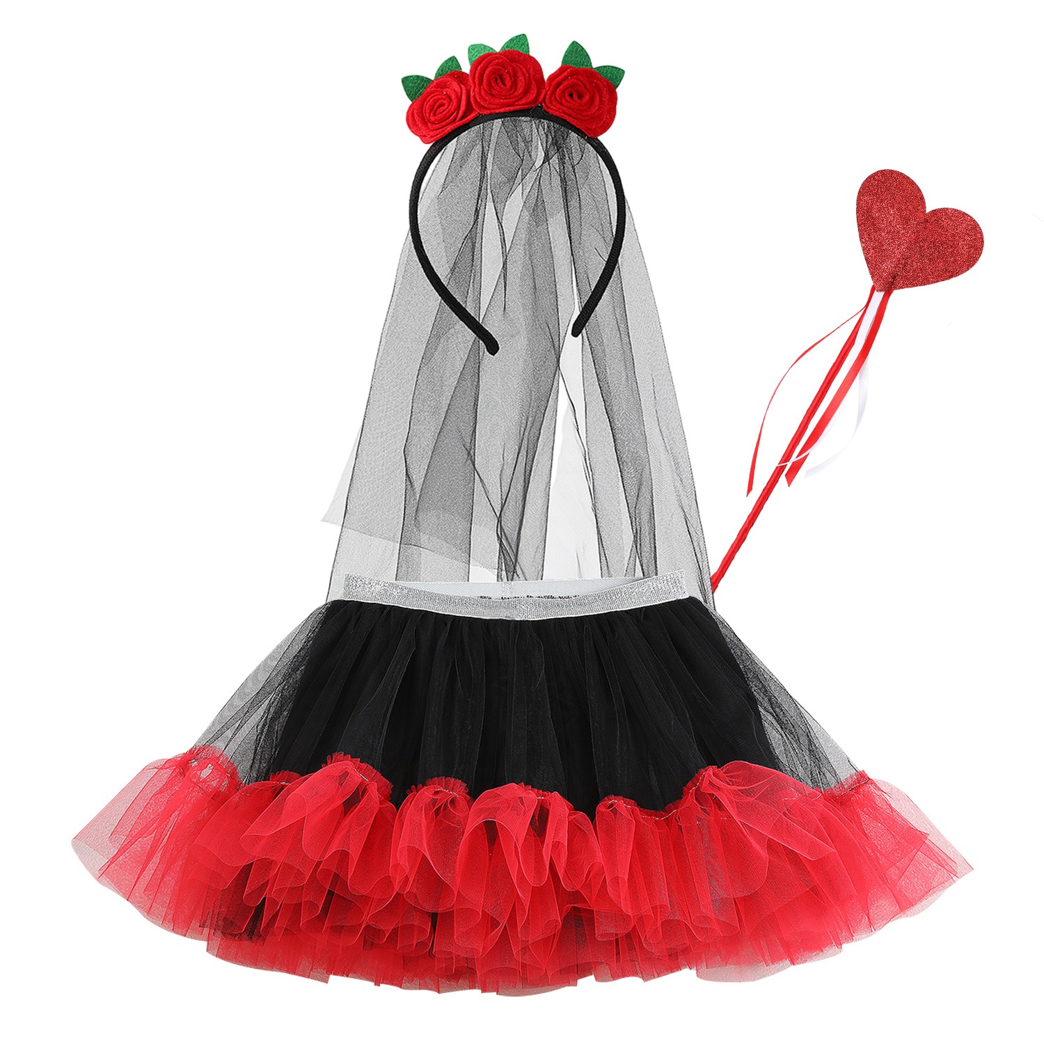2025年新作ハロウィン SサイズとMサイズのガールズスカート メッシュスカート COS ブライダルヘッドバンド マジックワンドセット