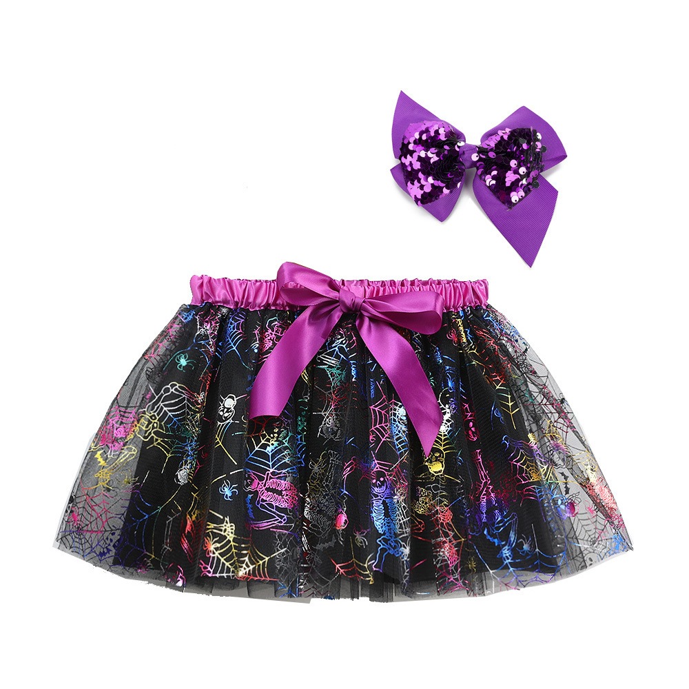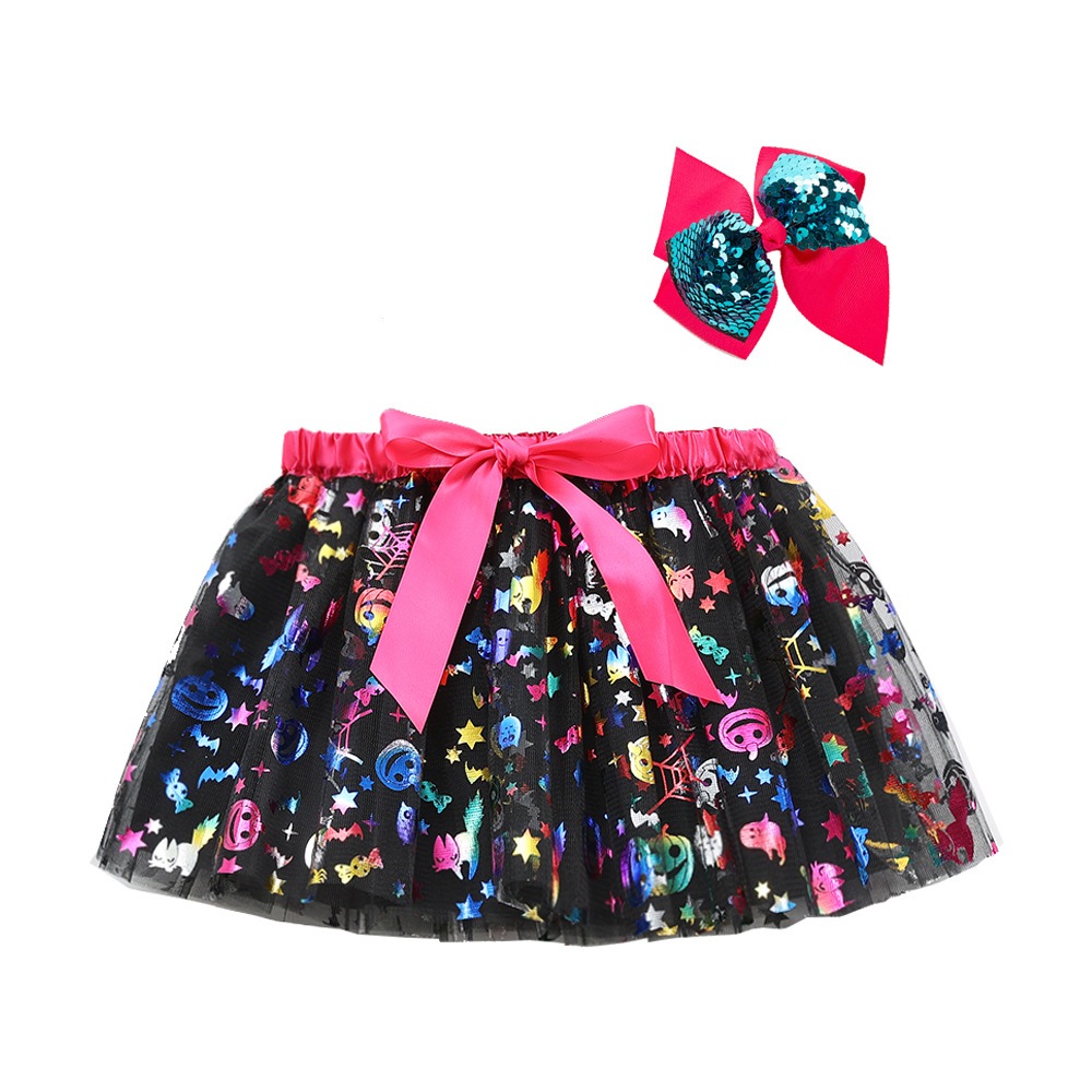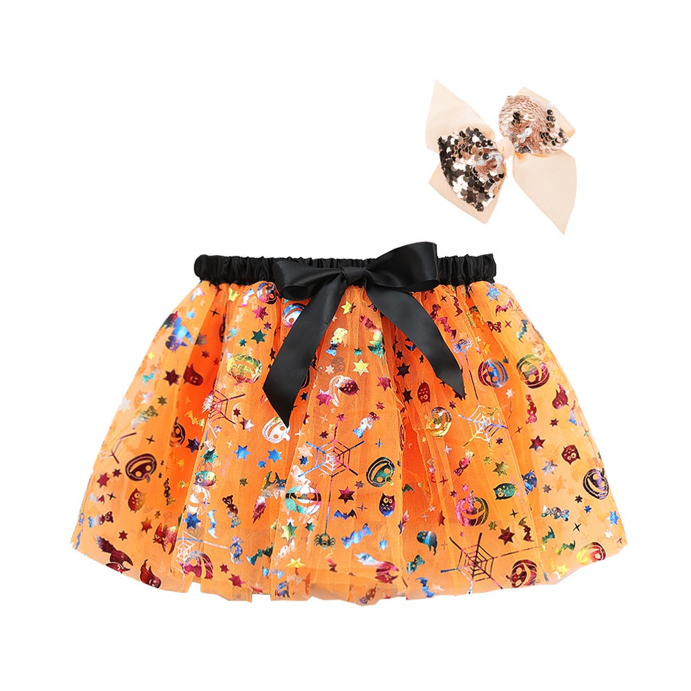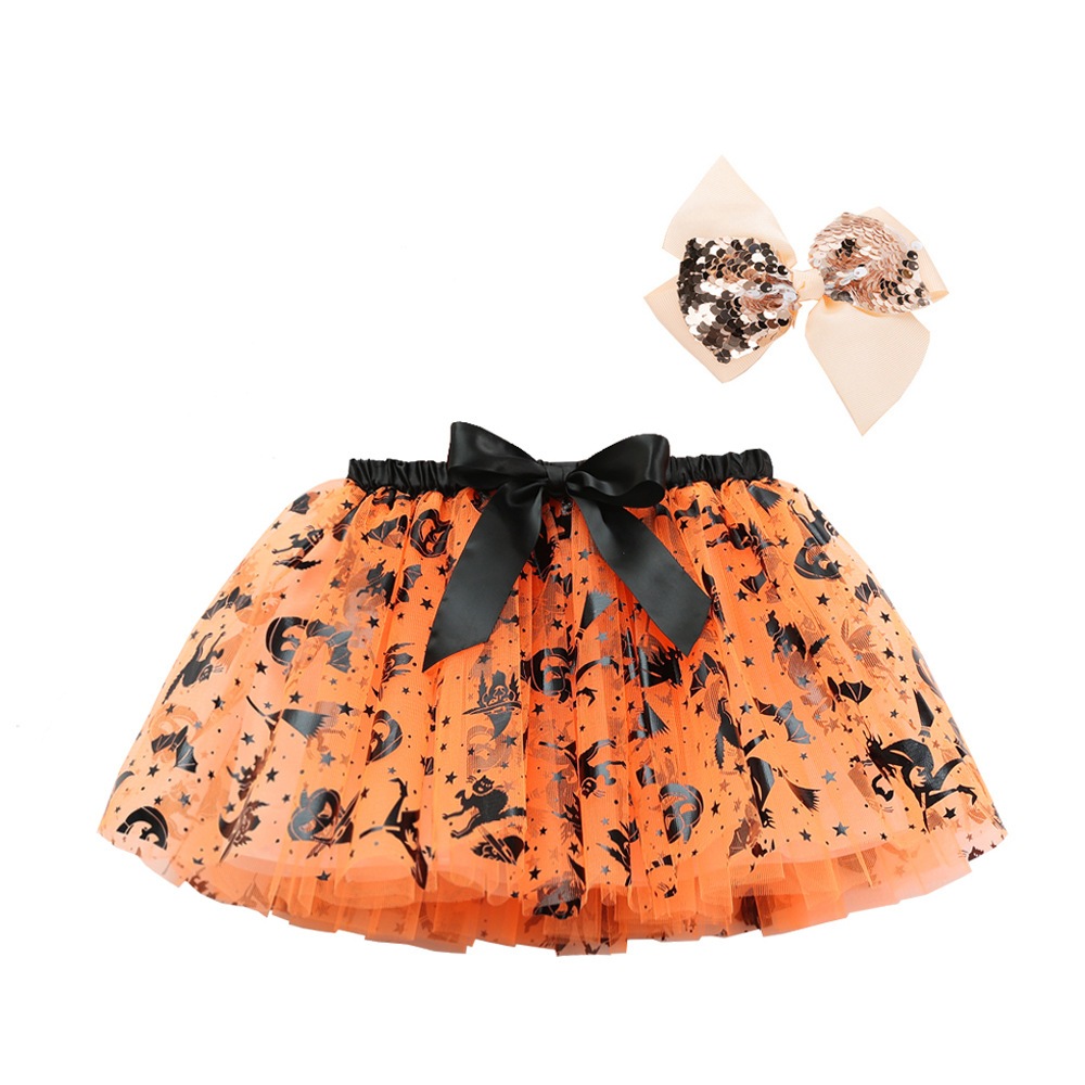 ハロウィンの新しい女の子のチュチュスカートヘアピンプリントメッシュパンプキンシードヨーロッパとアメリカの子供服スカート
