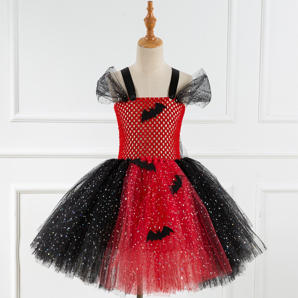 プリンセスドレスガールハロウィン魔女コスプレ衣装女の子スパンコールメッシュパフォーマンス衣装