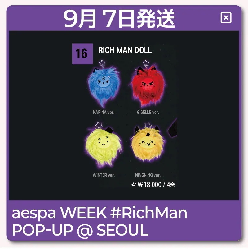 SMエンターテインメントAESPA [即時発送][特典贈呈] aespa WEEK #RichMan POP-UP @ SEOUL OFFICIAL MD 1