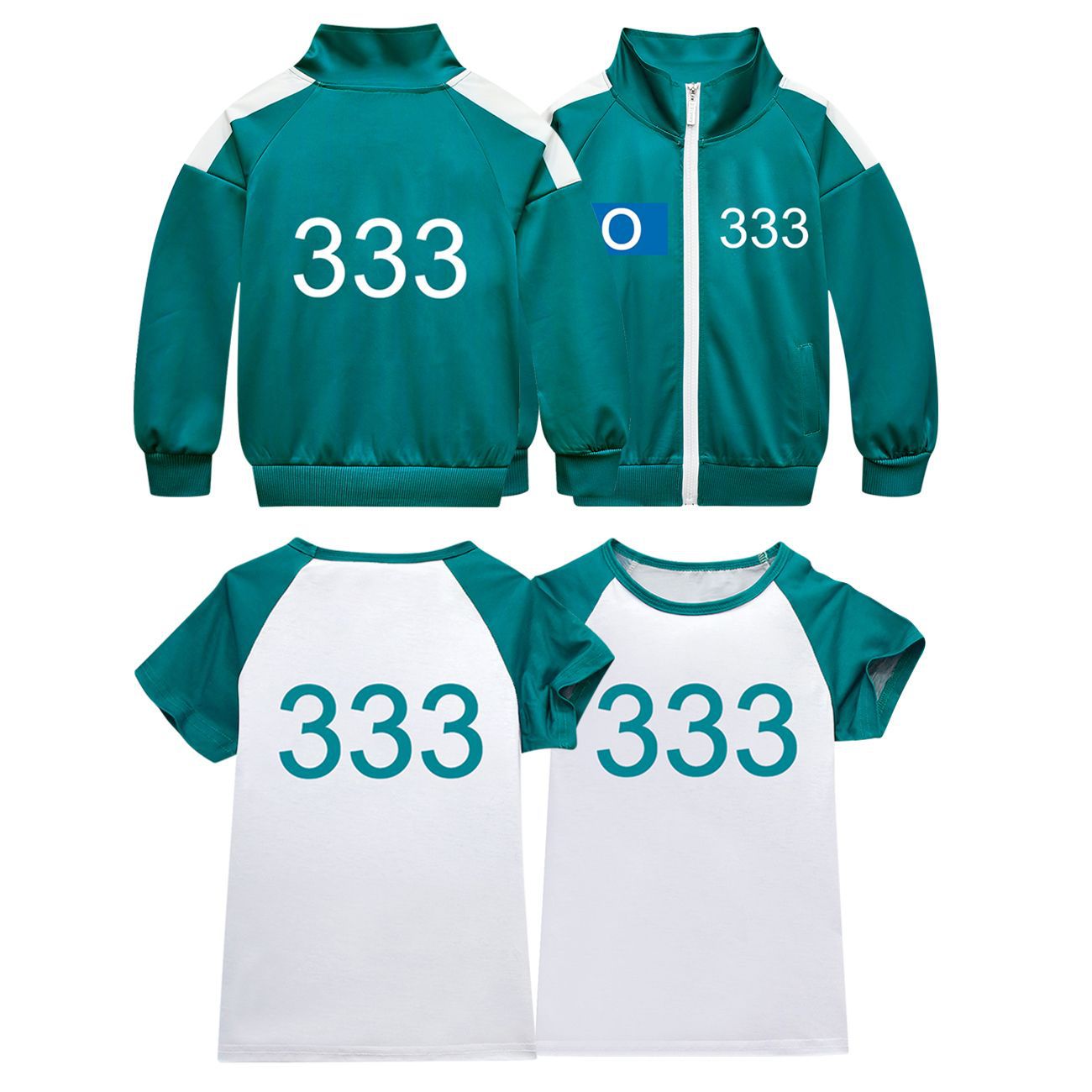 新入荷 最安値 イカゲーム コスプレ ハロウィン 韓国ドラマ コスチューム 333号 セット 子供/大人 110cm-170cm イカゲーム スポーツセット 上着 ズボン Tシャツ パーティー