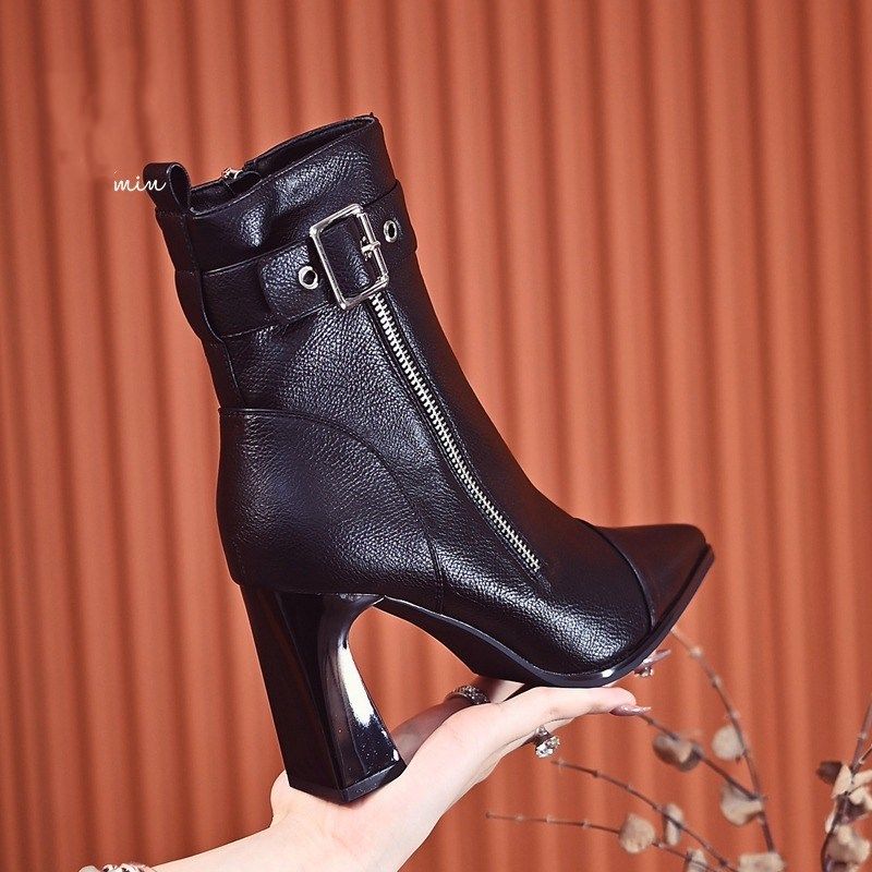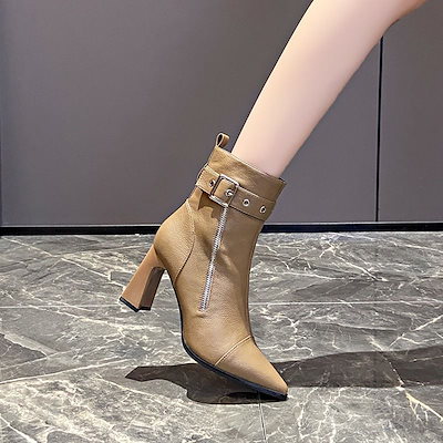 厚底シューズ ブーツ スパイクブーツ2023新型ベルトバックルデザイン感がおしゃれ秋冬ハイヒール太さと気品が軽く高級感がある レディース 韓国ファッション